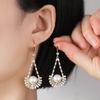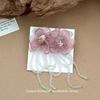 Brincos de borla de flor tridimensional rosa, brincos de cristal de chiffon, super fada, estilo de férias, leve, luxo, temperamento, feito à mão