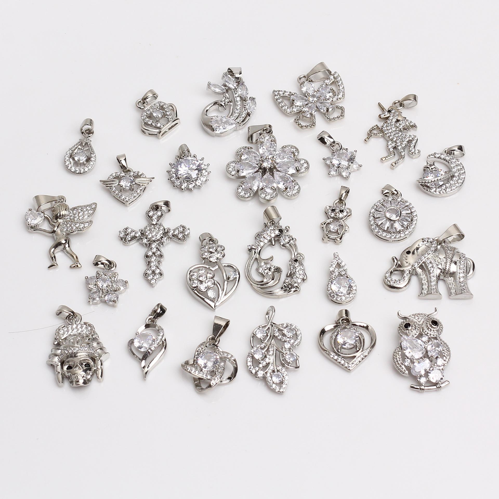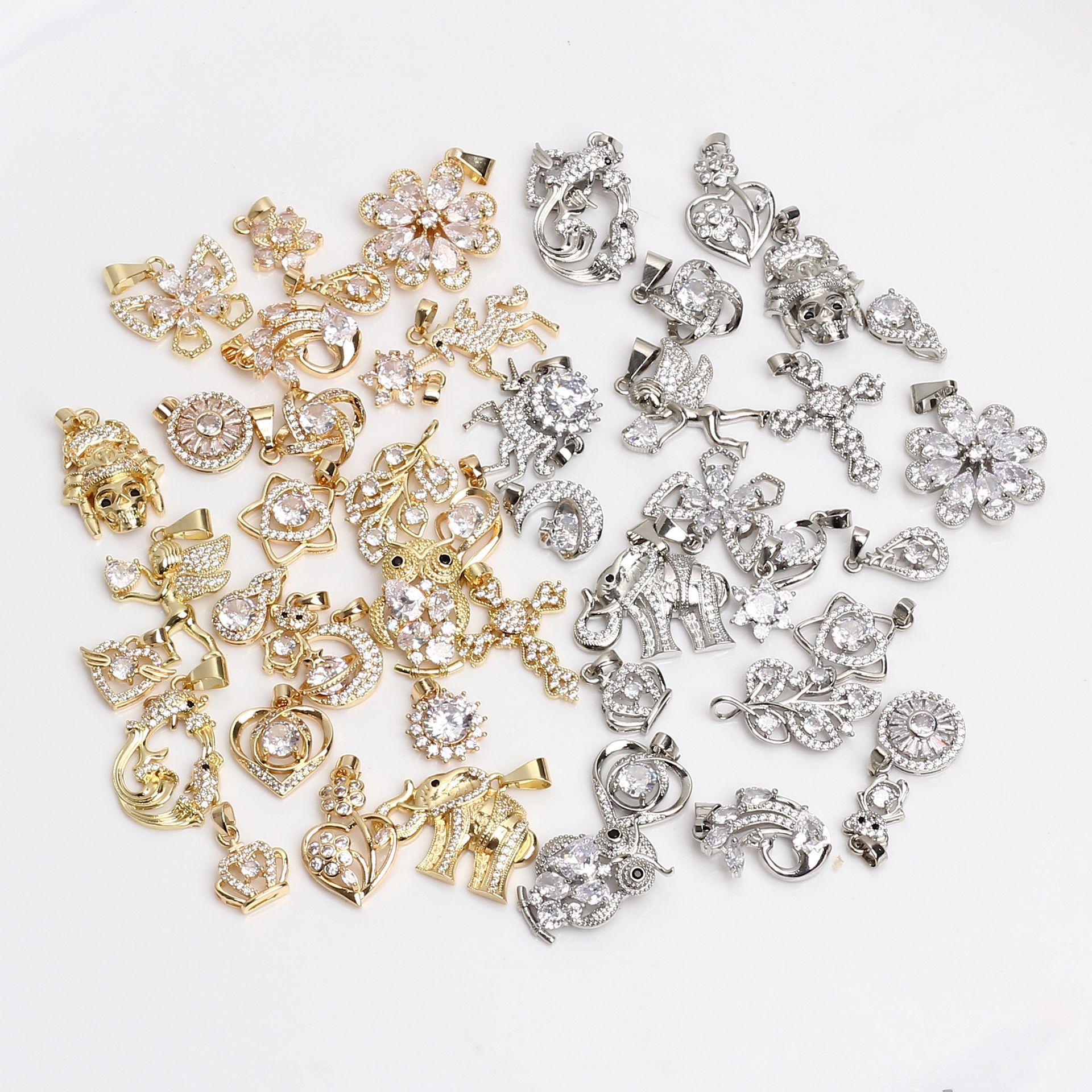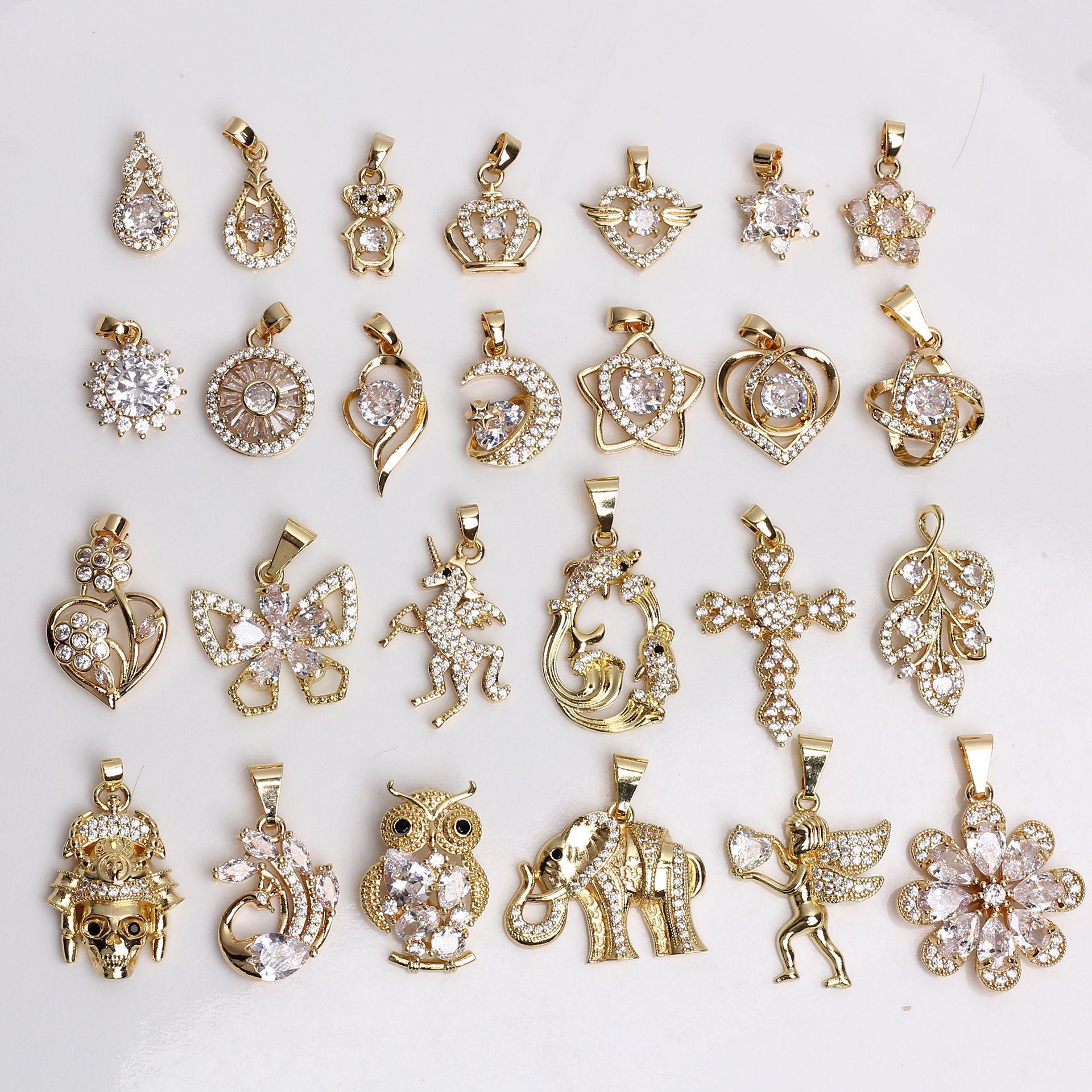 Jóias da Moda Ouro 14K Preenchido Micro-Cravejado Pingente de Zircônia Lua Borboleta Coração Flor de Ameixeira DIY Colar Pingente de Pulseira