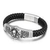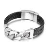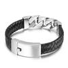 Joias de Aço Inoxidável Bruto para Homens Europeus e Americanos Personalizadas Pulseira de Couro Tecido de Corrente Cubana Polida de Aço Titânio para Homens da Moda