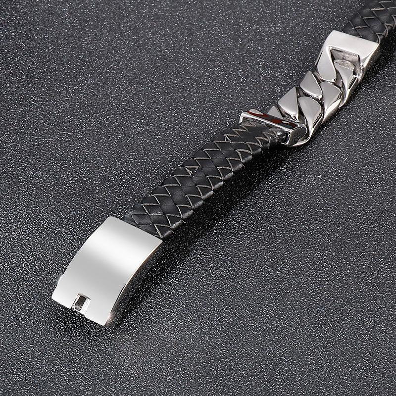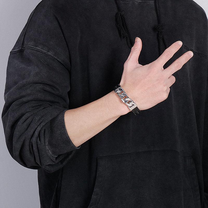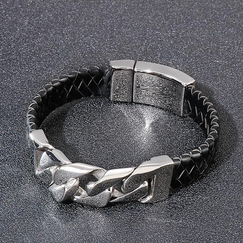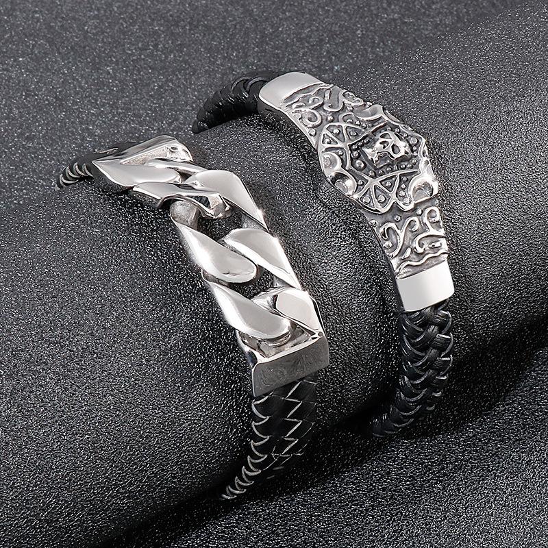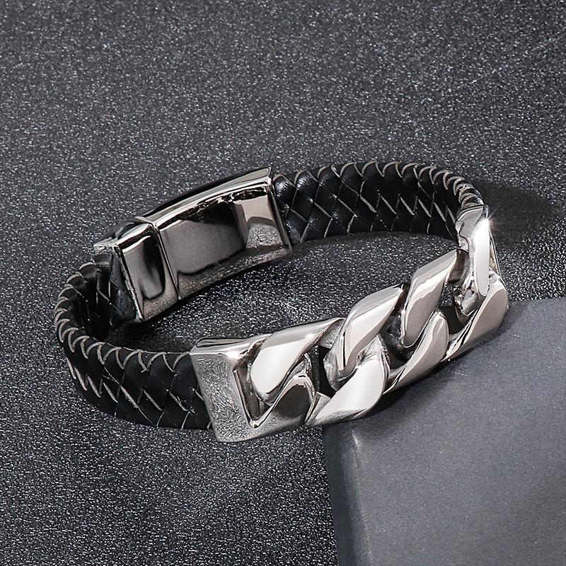 Compre Joias de Aço Inoxidável Bruto para Homens Europeus e Americanos Personalizadas Pulseira de Couro Tecido de Corrente Cubana Polida de Aço Titânio para Homens da Moda no atacado no Joom.pro