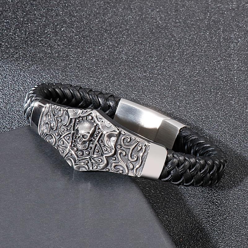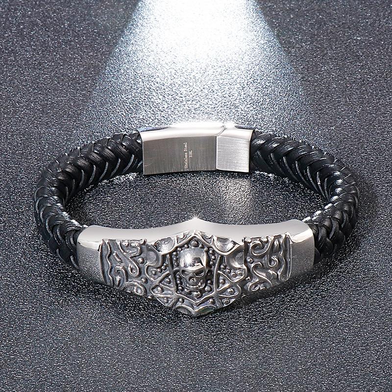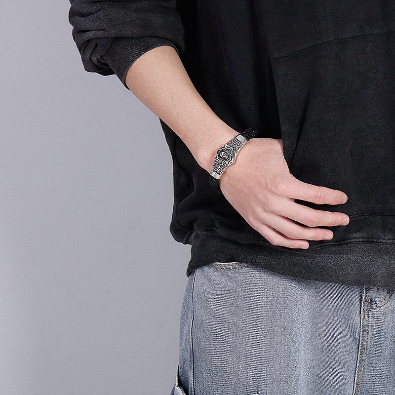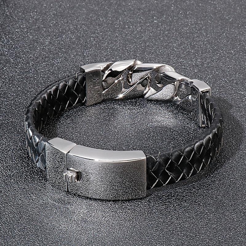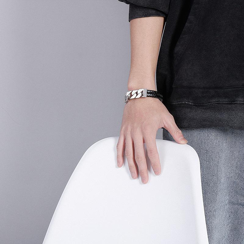 Compre Joias de Aço Inoxidável Bruto para Homens Europeus e Americanos Personalizadas Pulseira de Couro Tecido de Corrente Cubana Polida de Aço Titânio para Homens da Moda no atacado no Joom.pro
