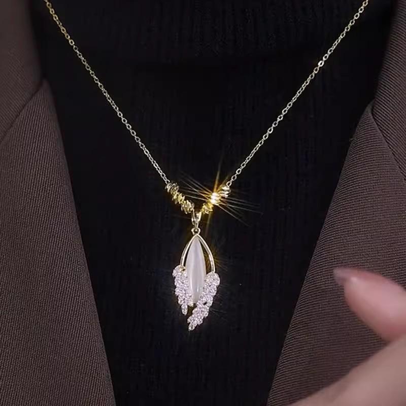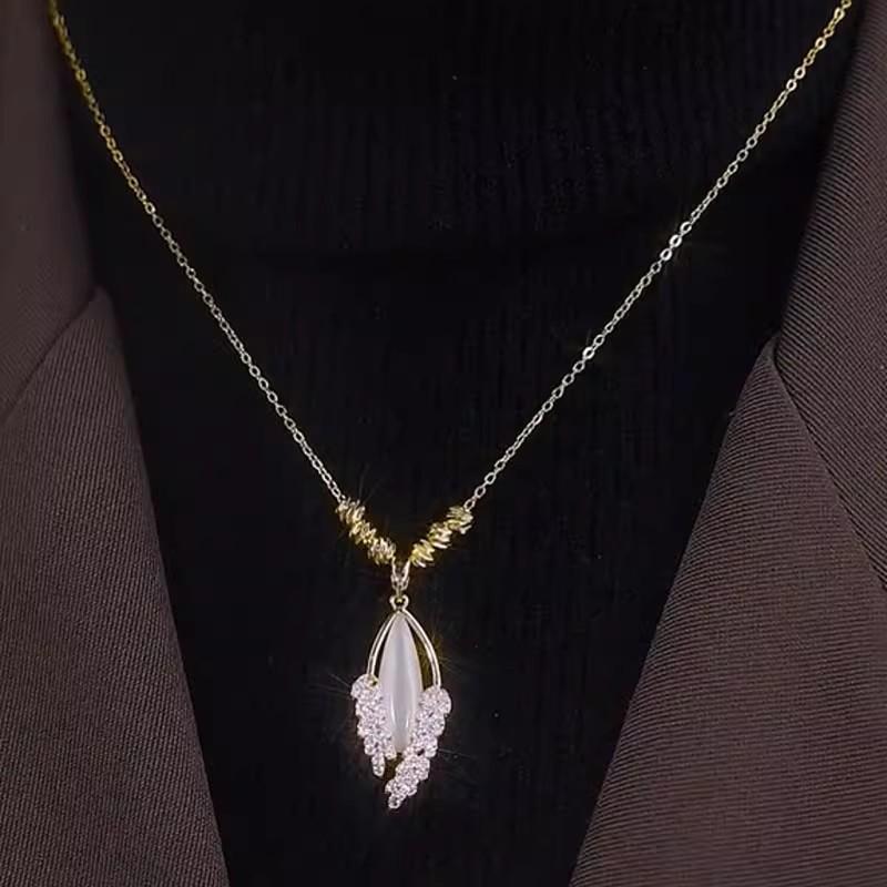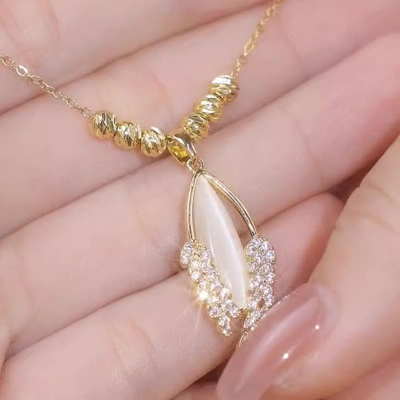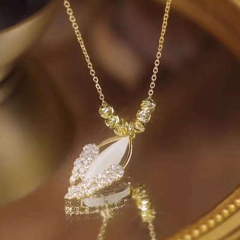 Compre Luz de luxo nicho design de alto sentido contas da sorte olho de gato pedra trigo orelha colar temperamento feminino clavícula cadeia colar acessórios moda no atacado no Joom.pro