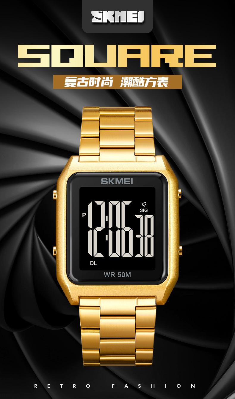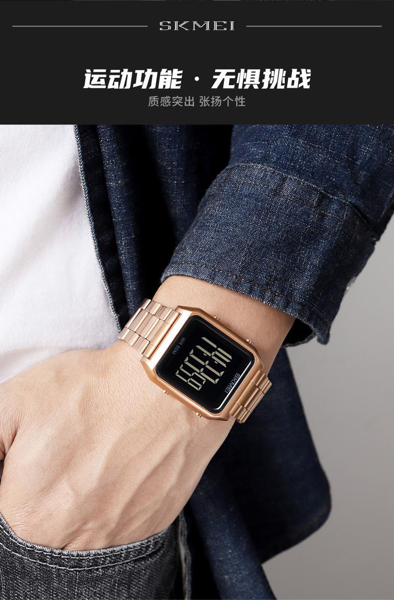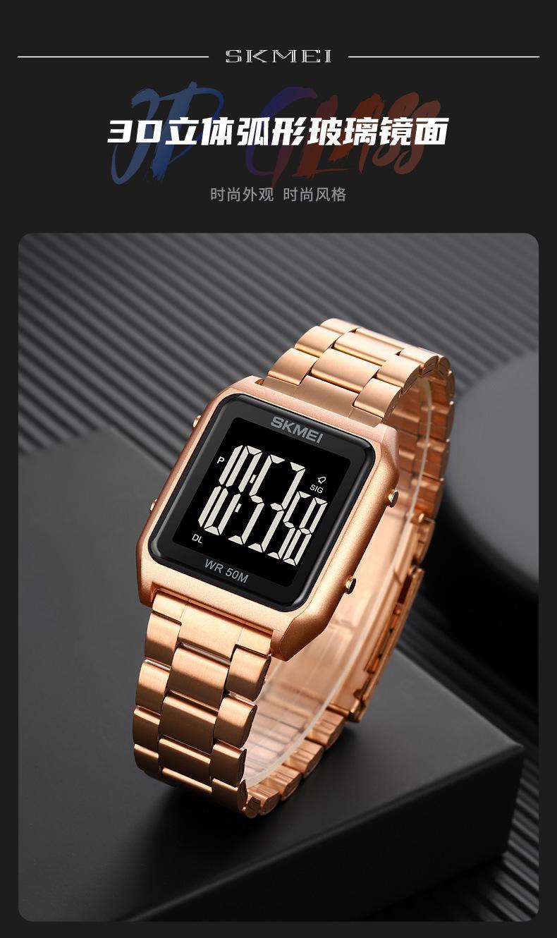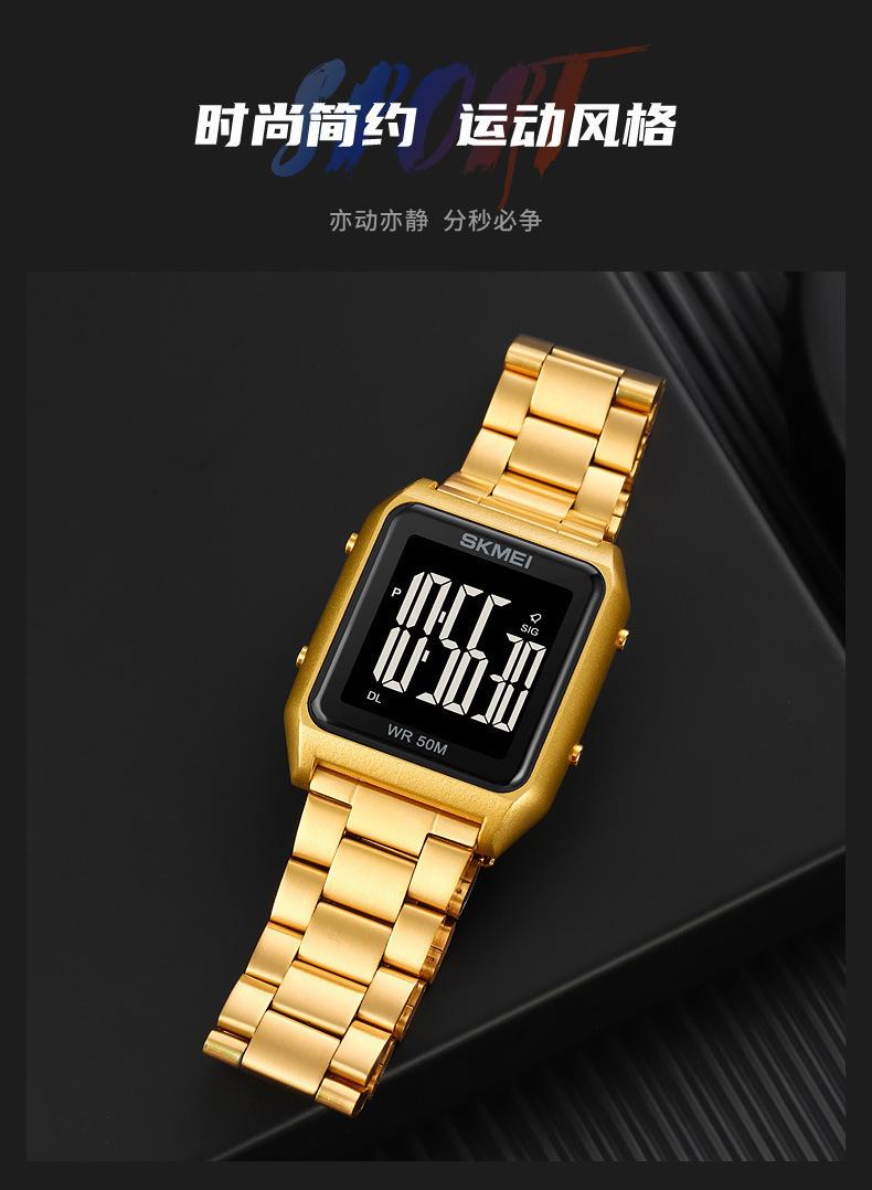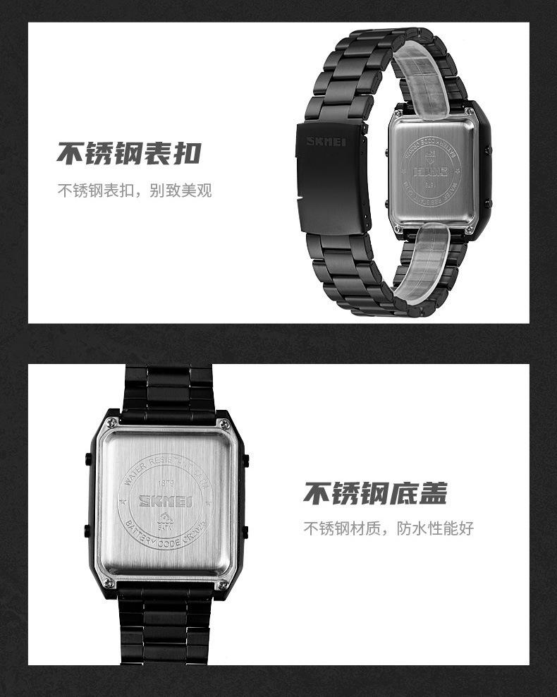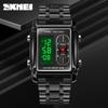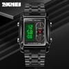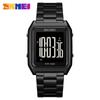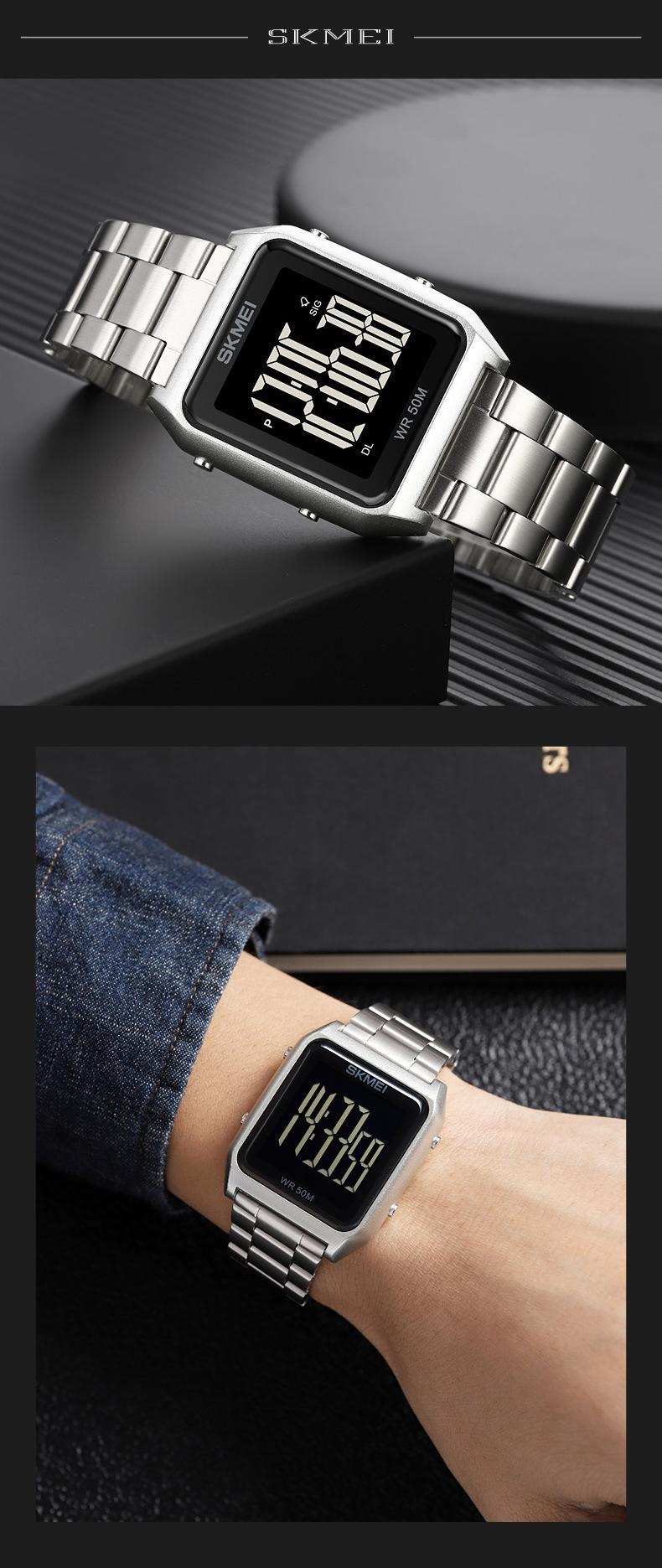 Relógio eletrônico masculino de tela grande com pulseira de aço e relógio quadrado multifuncional de estudante