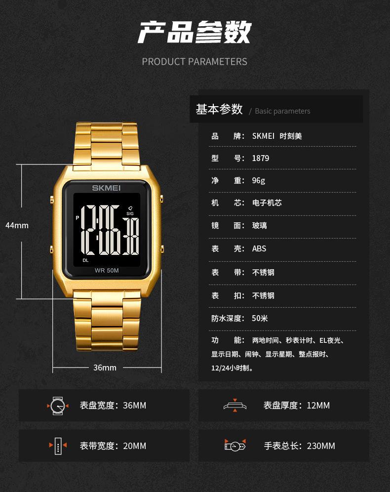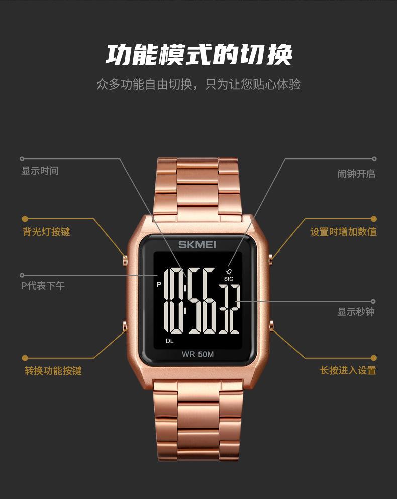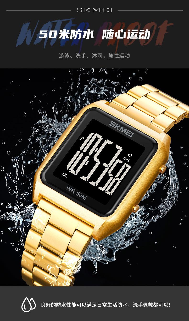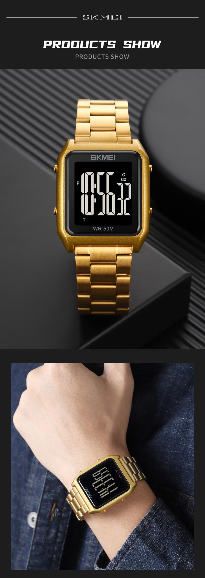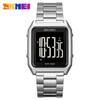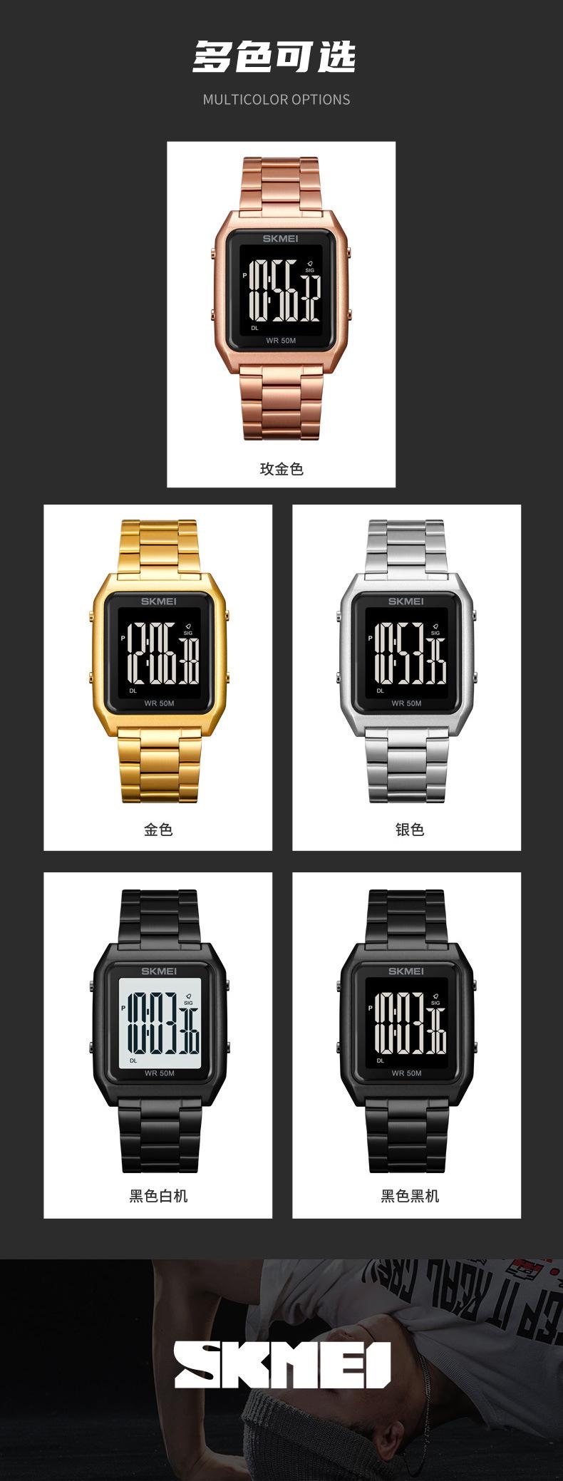 Relógio eletrônico masculino de tela grande com pulseira de aço e relógio quadrado multifuncional de estudante