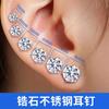A pair of g001 crystal zirconium 3mm steel color earrings, A pair of g001 crystal zirconium 4mm steel color ea...