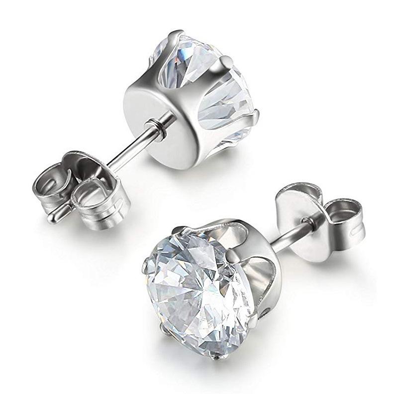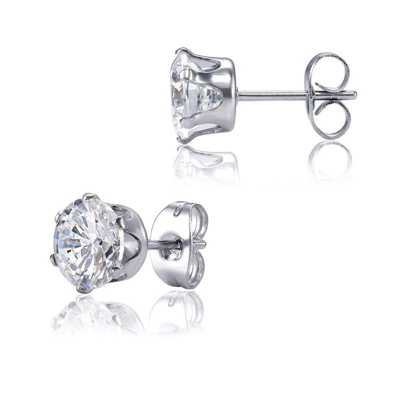 A pair of G001 crystal zirconium 8mm steel stud earrings