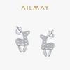 S925 Brincos de Prata Fawn Feminino Estilo Coreano Brincos Doces Frescos Simples Requintado Bonito Chifres Diamante Jóias de Orelha