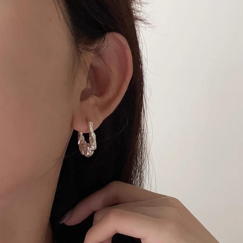 Estilo coreano estilo coreano brincos de anel plissado feminino personalidade de luxo leve simples all-match estilo ocidental design de nicho brincos