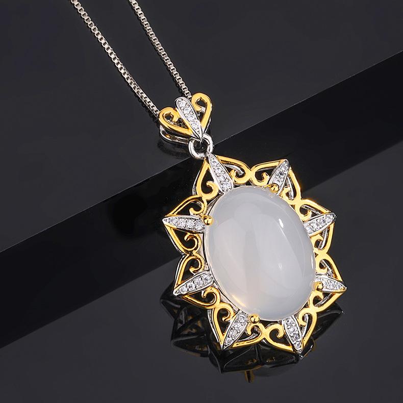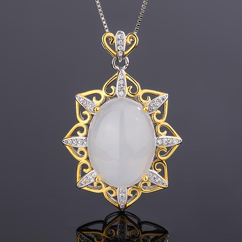 Huayoumei jóias transfronteiriças imitação natural Hetian jade novo colar das mulheres retro banhado a ouro jade natural calcedônia pingente