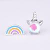 Brincos coloridos de pedra da lua femininos estilo coreano, brincos assimétricos de arco-íris, unicórnio, joias para orelha
