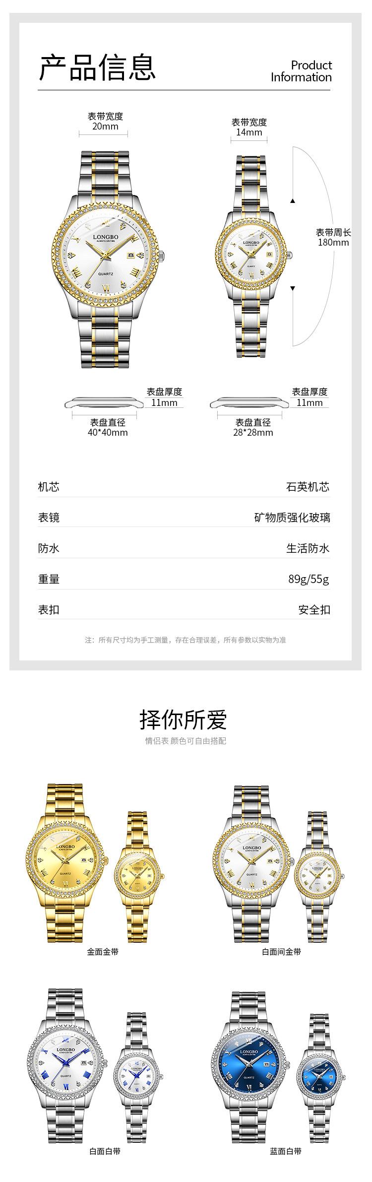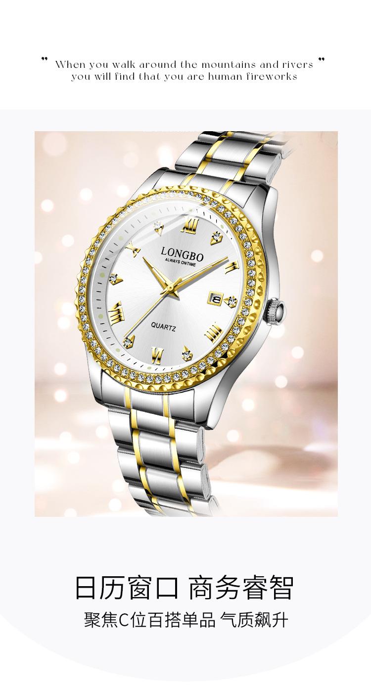 Relógio Masculino e Feminino Longbo Transfronteiriço Marca Relógio de Negócios Casal Relógio Simples Calendário à Prova d'água Luminoso Comércio Exterior