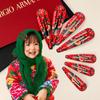 Novo acessório de cabelo de celebridade da internet impressão nordeste jaqueta floral grande clipe BB clipe de franja de pintura clipe lateral doce combina com tudo clipe gota d'água