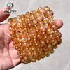 Pulseira de quartzo rutilado dourado natural da Jingde Jewelry, pulseira de contas de cristal de titânio para homens e mulheres, fabricante de joias de quartzo rutilado amarelo por atacado