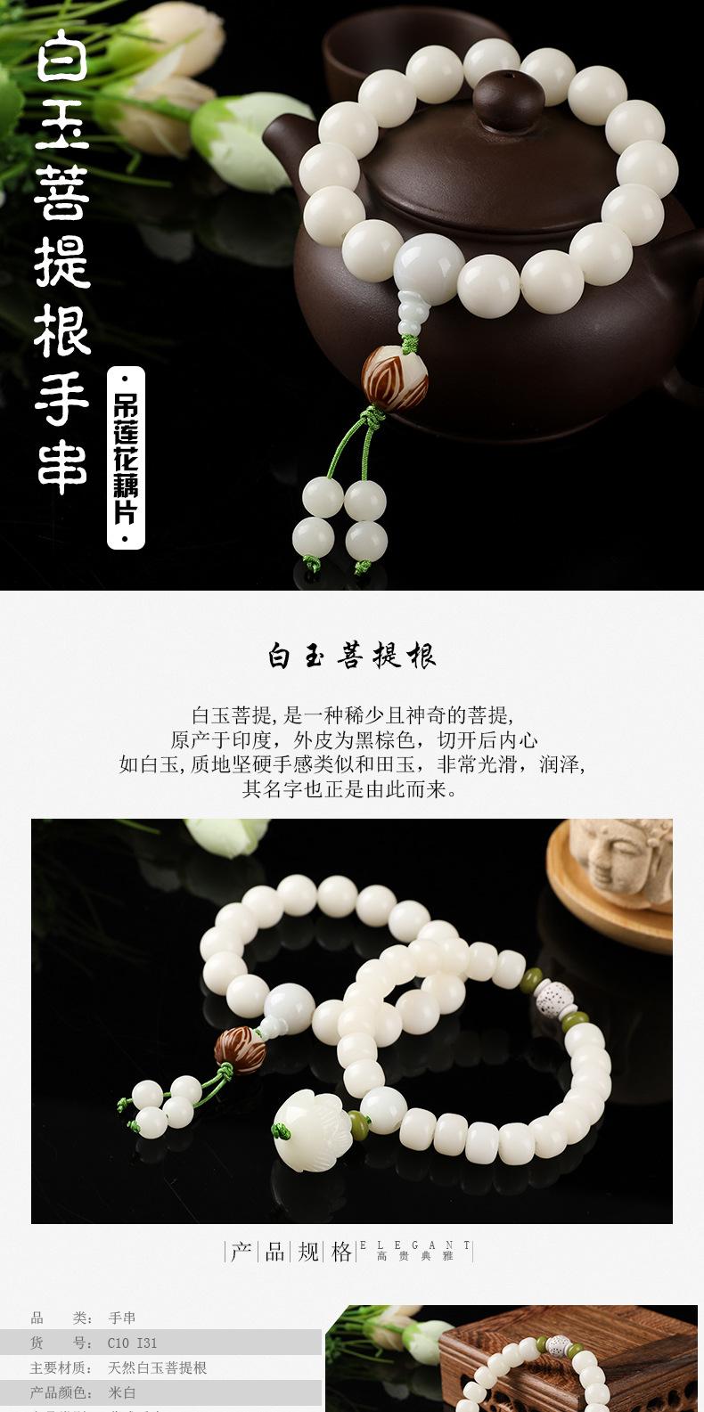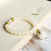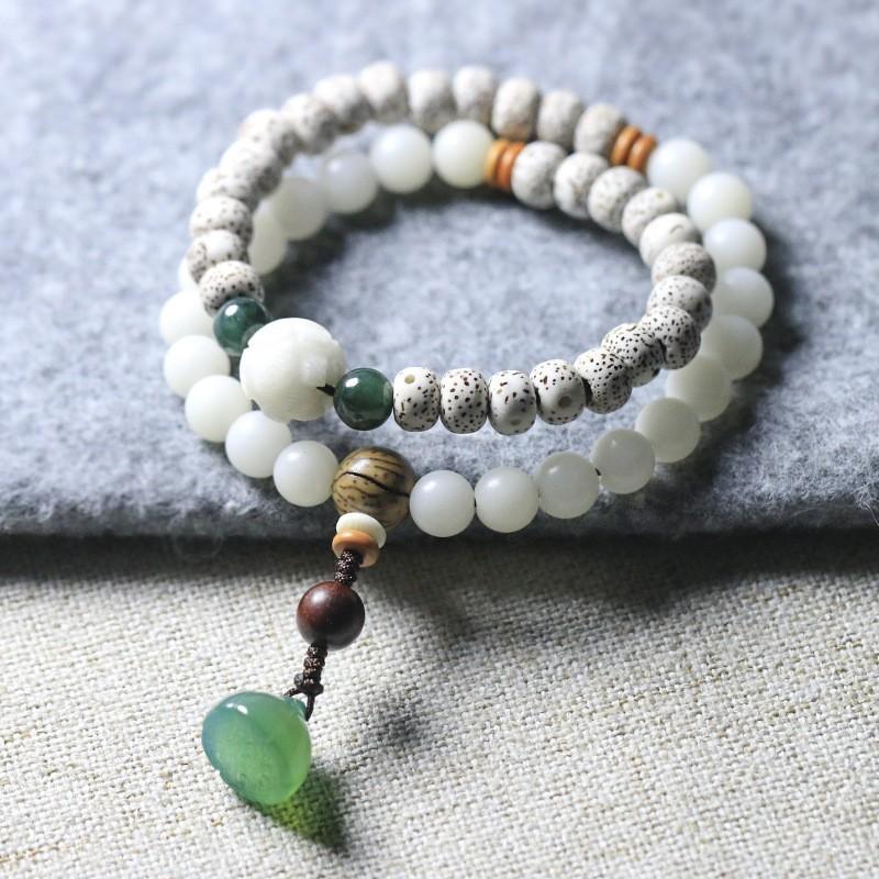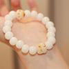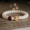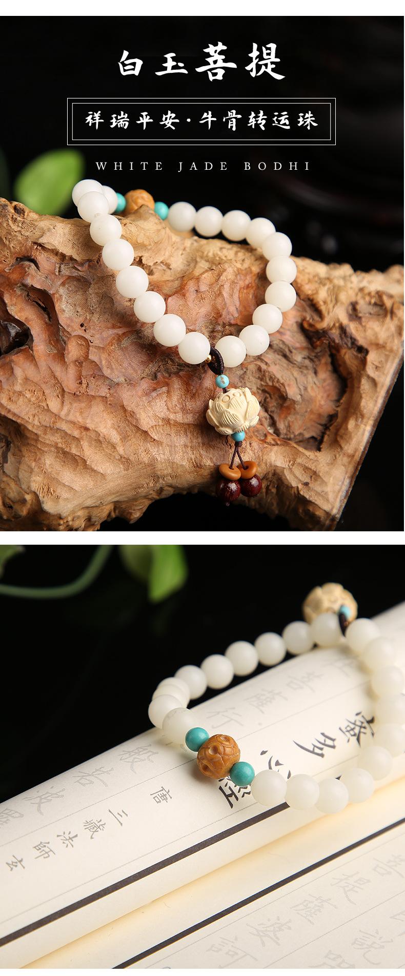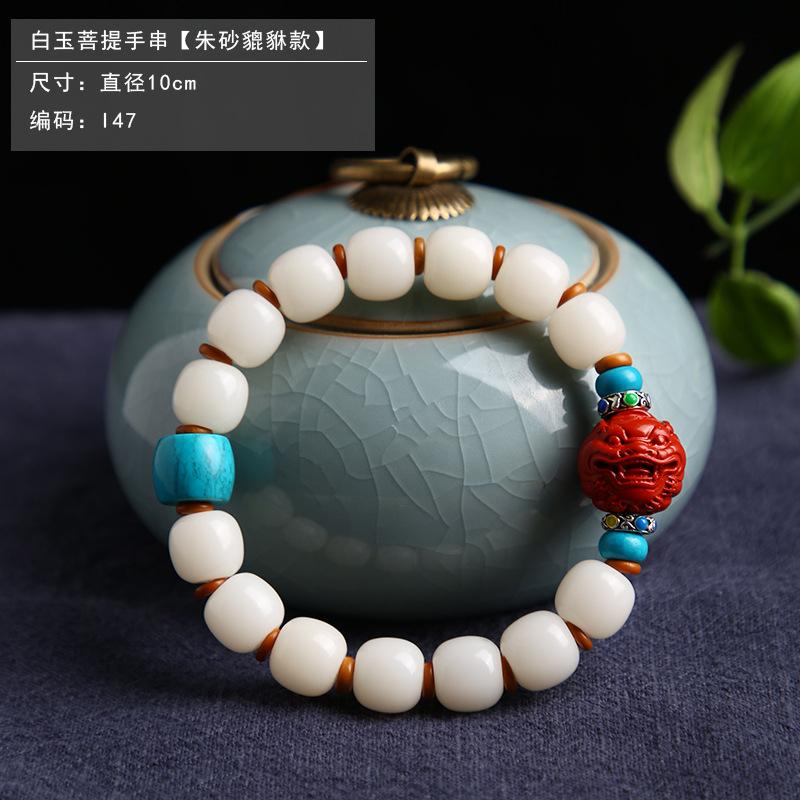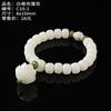 White jade bodhi bracelet [cinnabar pixiu style], White jade bodhi bracelet [plain bead style], White jade bod...