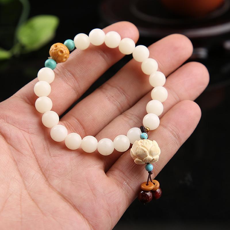 Pulseira de Bodhi de Jade Branco Fabricantes Atacado Pulseira de Contas de Raiz de Bodhi Branca Natural Wen Play Pulseira Masculina e Feminina Joias
