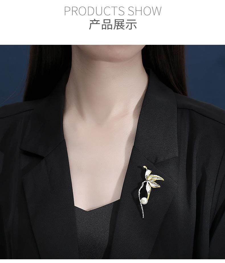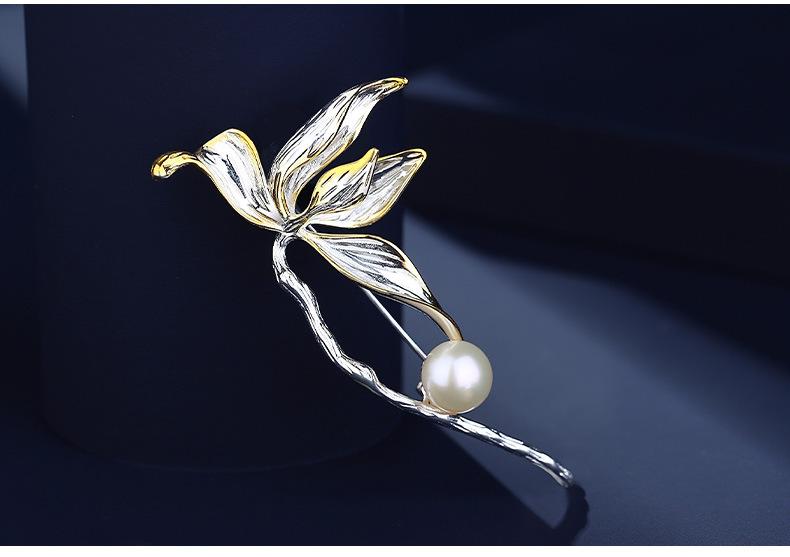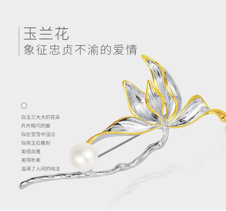 Compre Full-body s925 Sterling Silver Magnolia incrustado broche de pérola high-end feminino corpete pin commuter roupas terno acessórios fivela no atacado no Joom.pro