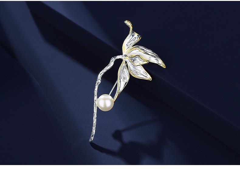 Full-body s925 Sterling Silver Magnolia incrustado broche de pérola high-end feminino corpete pin commuter roupas terno acessórios fivela