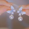 Nicho Retro Zircon Pérola Cristal Brincos Borboleta Design Feminino Senso de Personalidade Brincos de Moda All-match Brincos