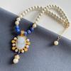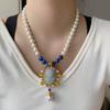 Colar Antigo Médio Incrustado Atmosférico Figura Simples Pingente Colar de Corrente de Osso de Pérola de Água Doce Feito à Mão para Mulheres Pingente