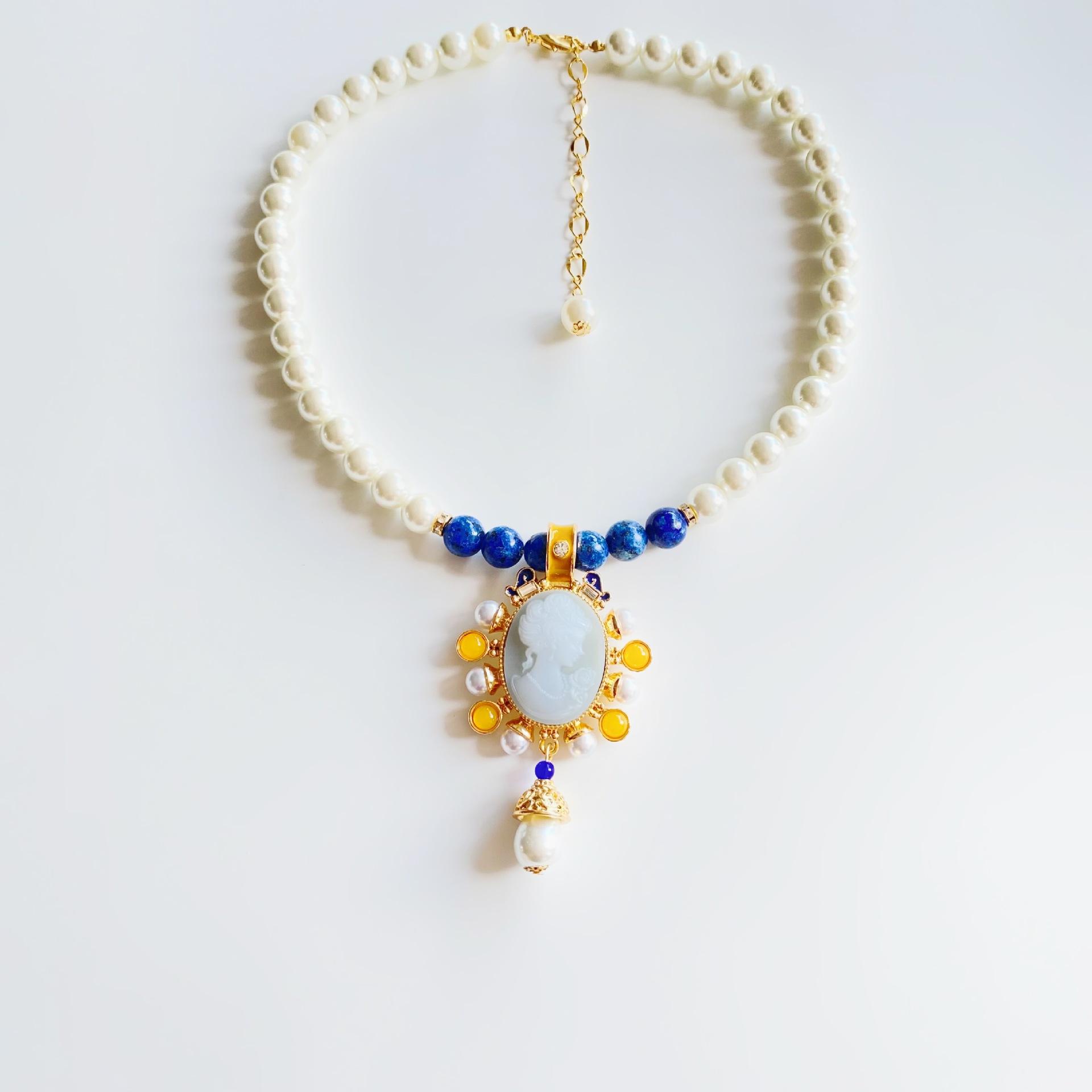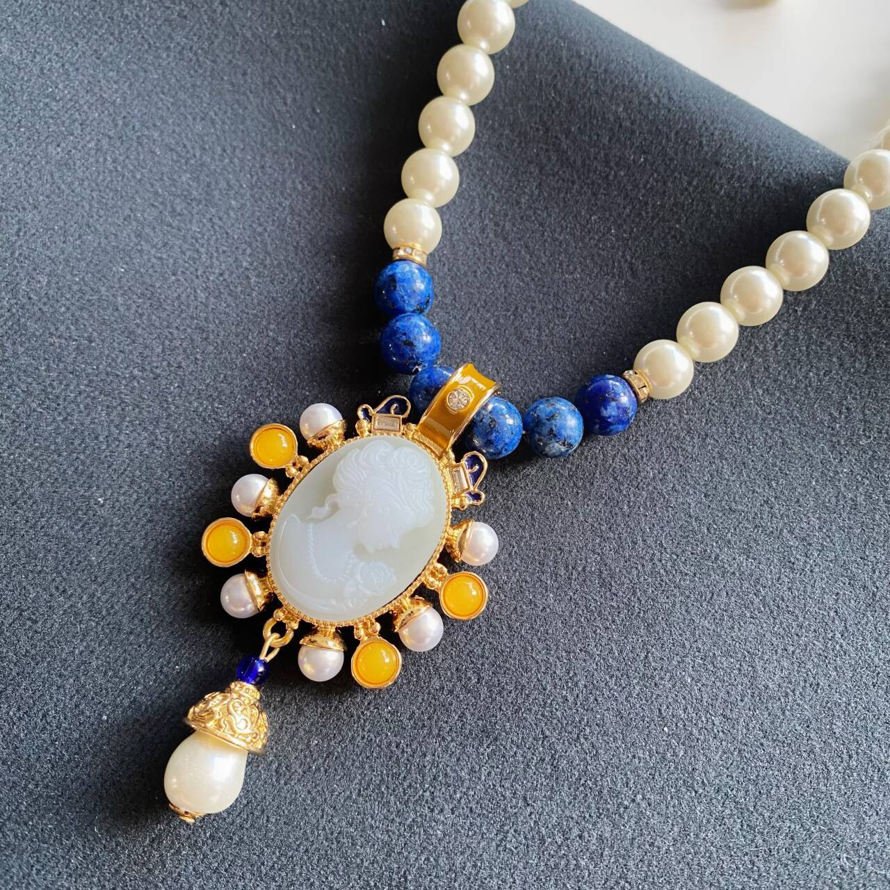 Compre Colar Antigo Médio Incrustado Atmosférico Figura Simples Pingente Colar de Corrente de Osso de Pérola de Água Doce Feito à Mão para Mulheres Pingente no atacado no Joom.pro