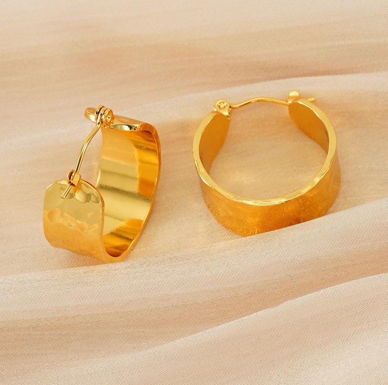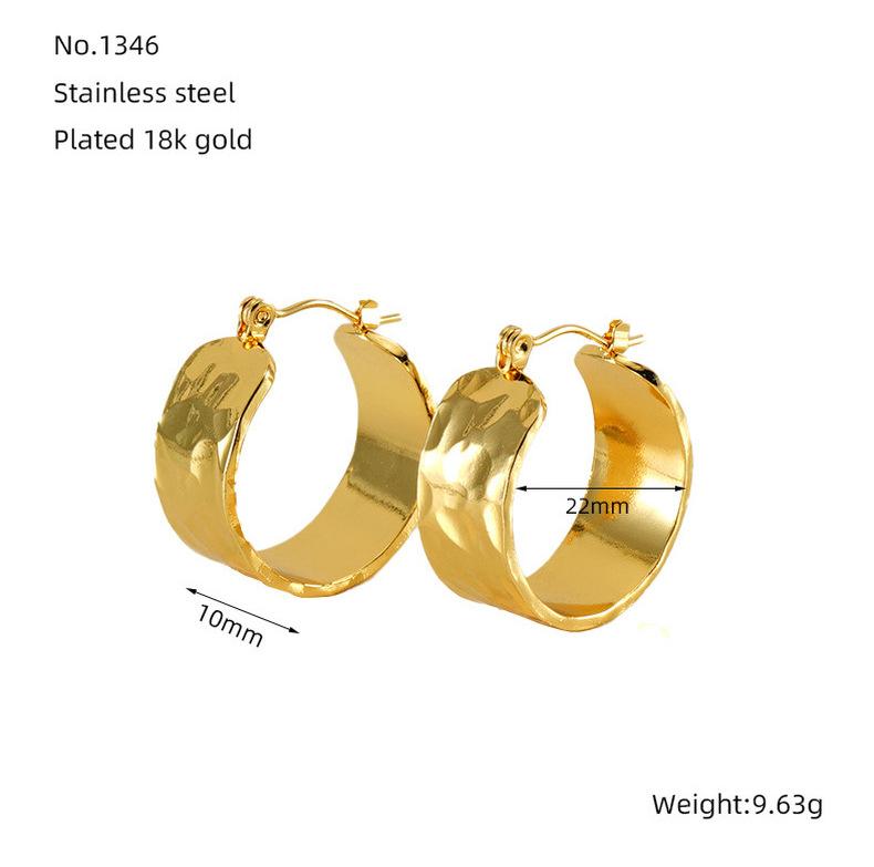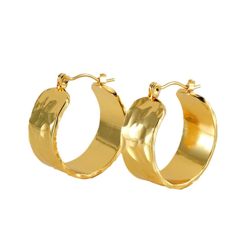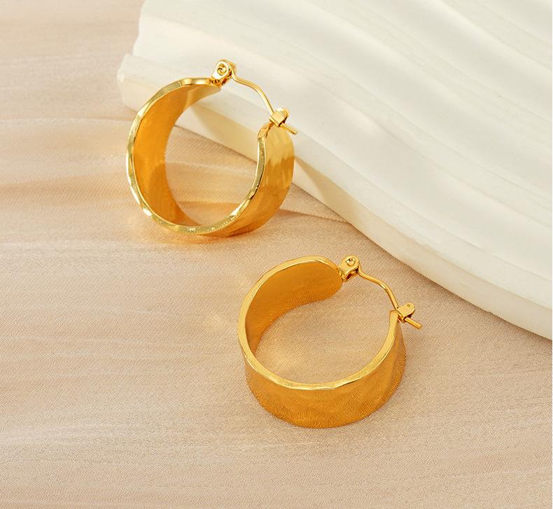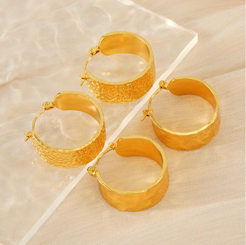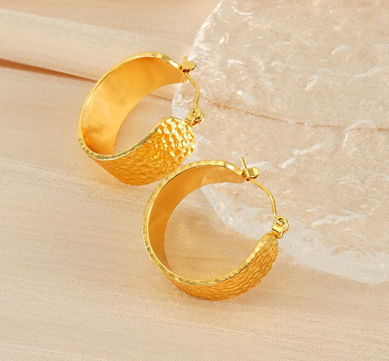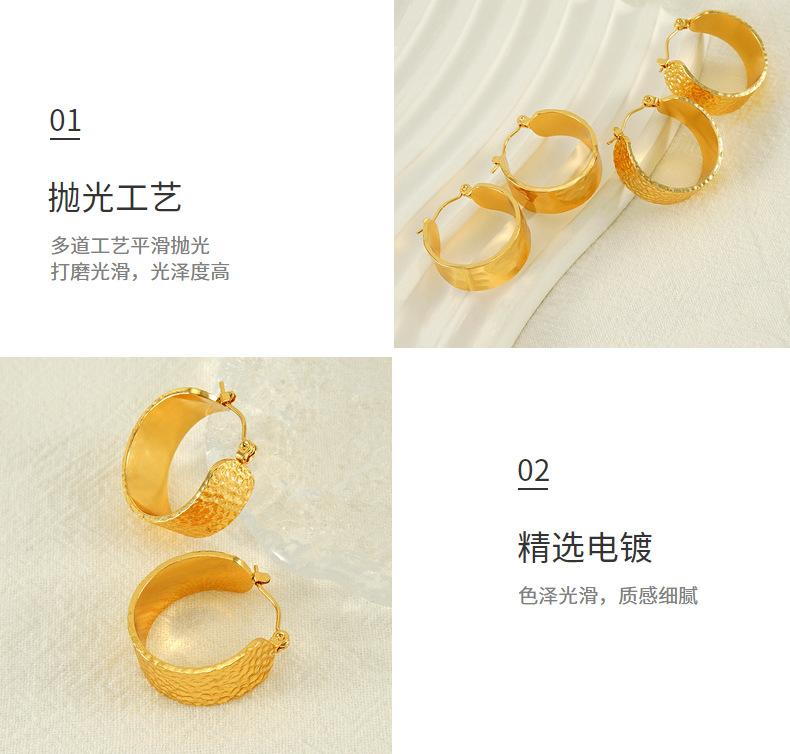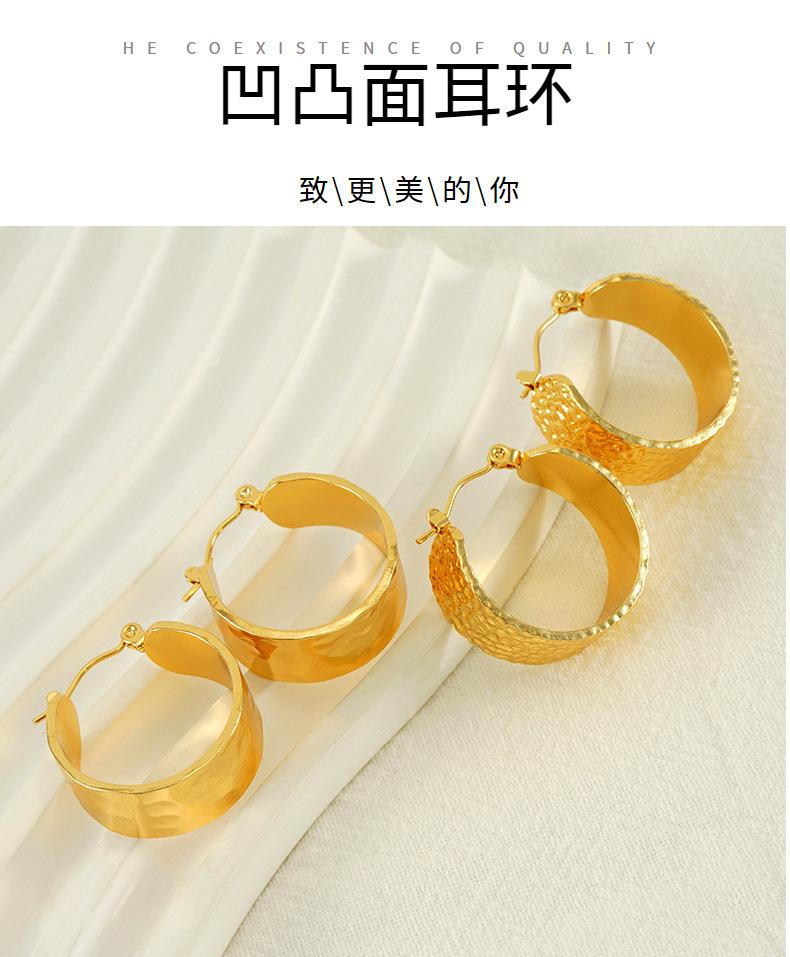 Nova tendência de design de textura de superfície côncava e convexa entre a Europa e os Estados Unidos, brincos largos de aço inoxidável, brincos de aço de titânio versáteis e modernos