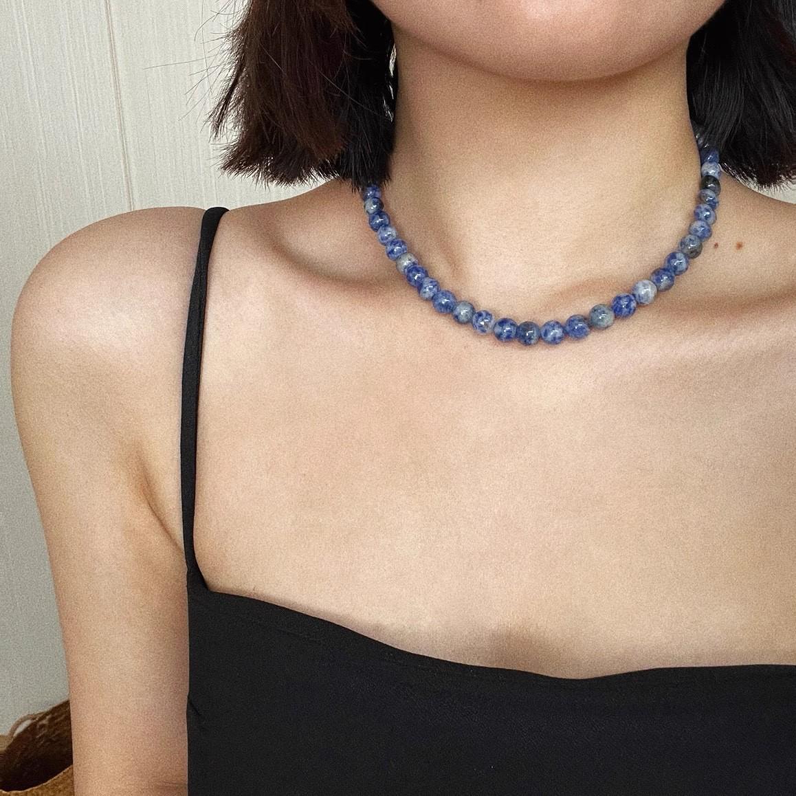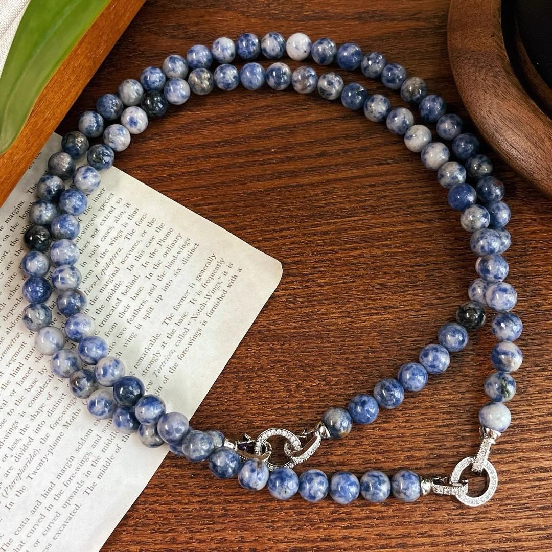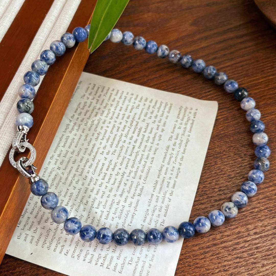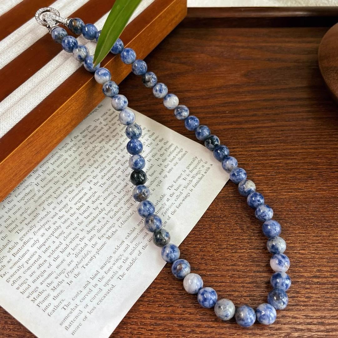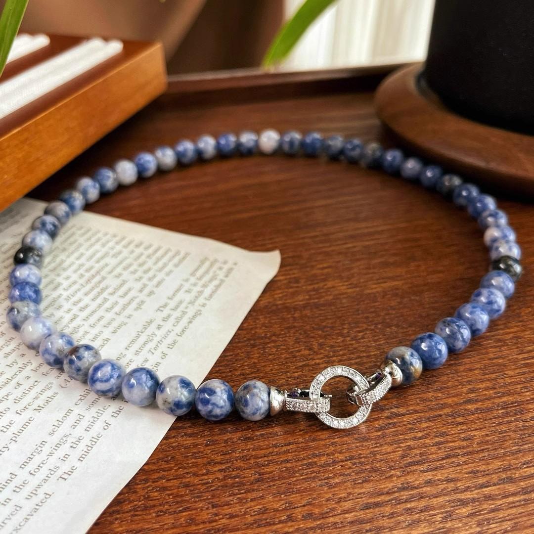 Estilo chinês antigo retro clássico durável natural ponto azul pedra contas colar nicho personalidade na moda azul e branco cor de porcelana