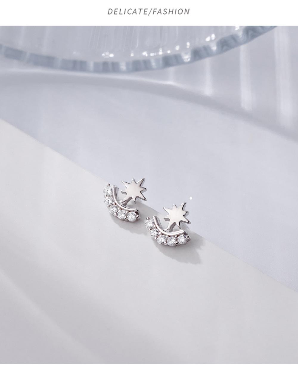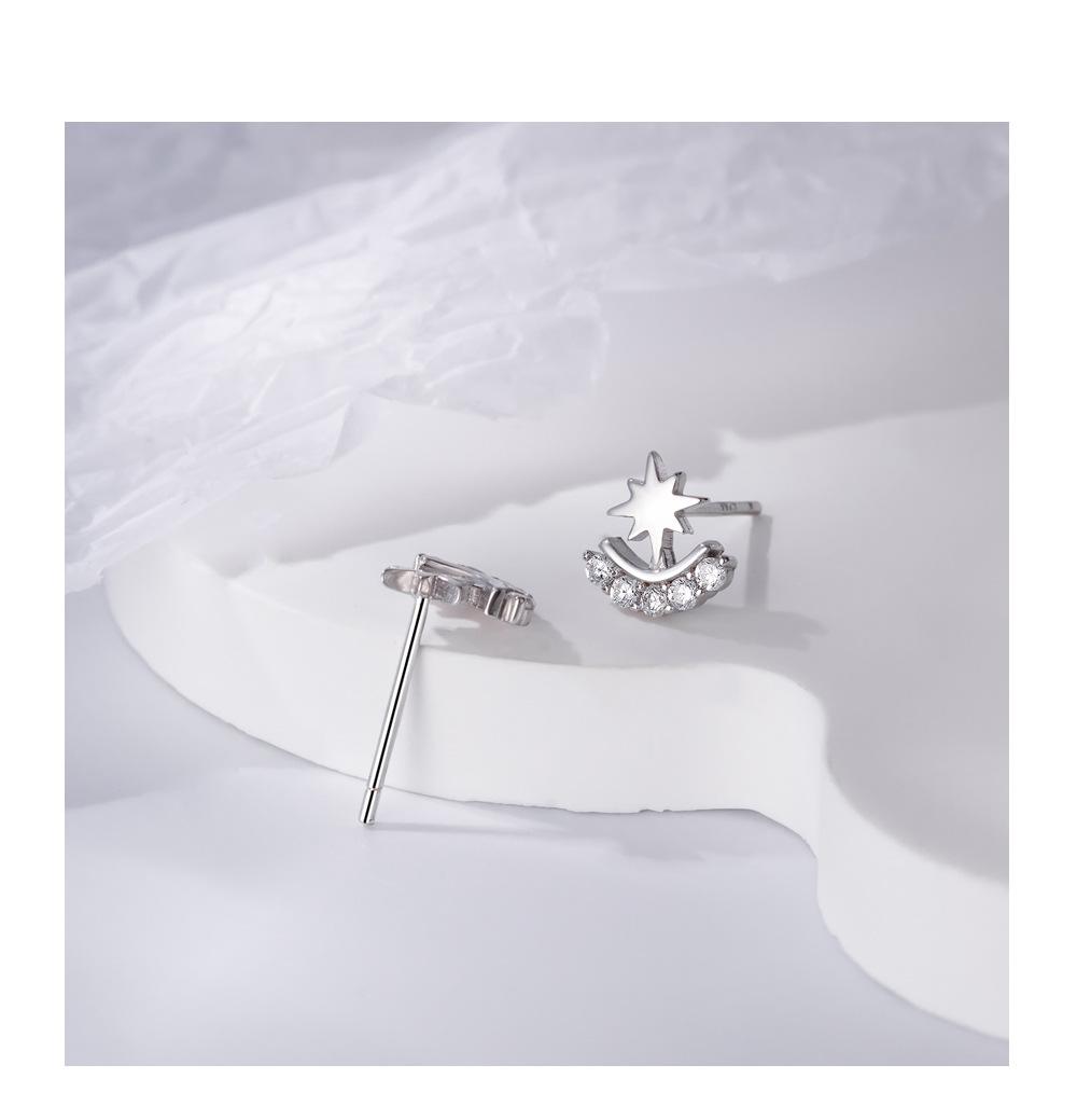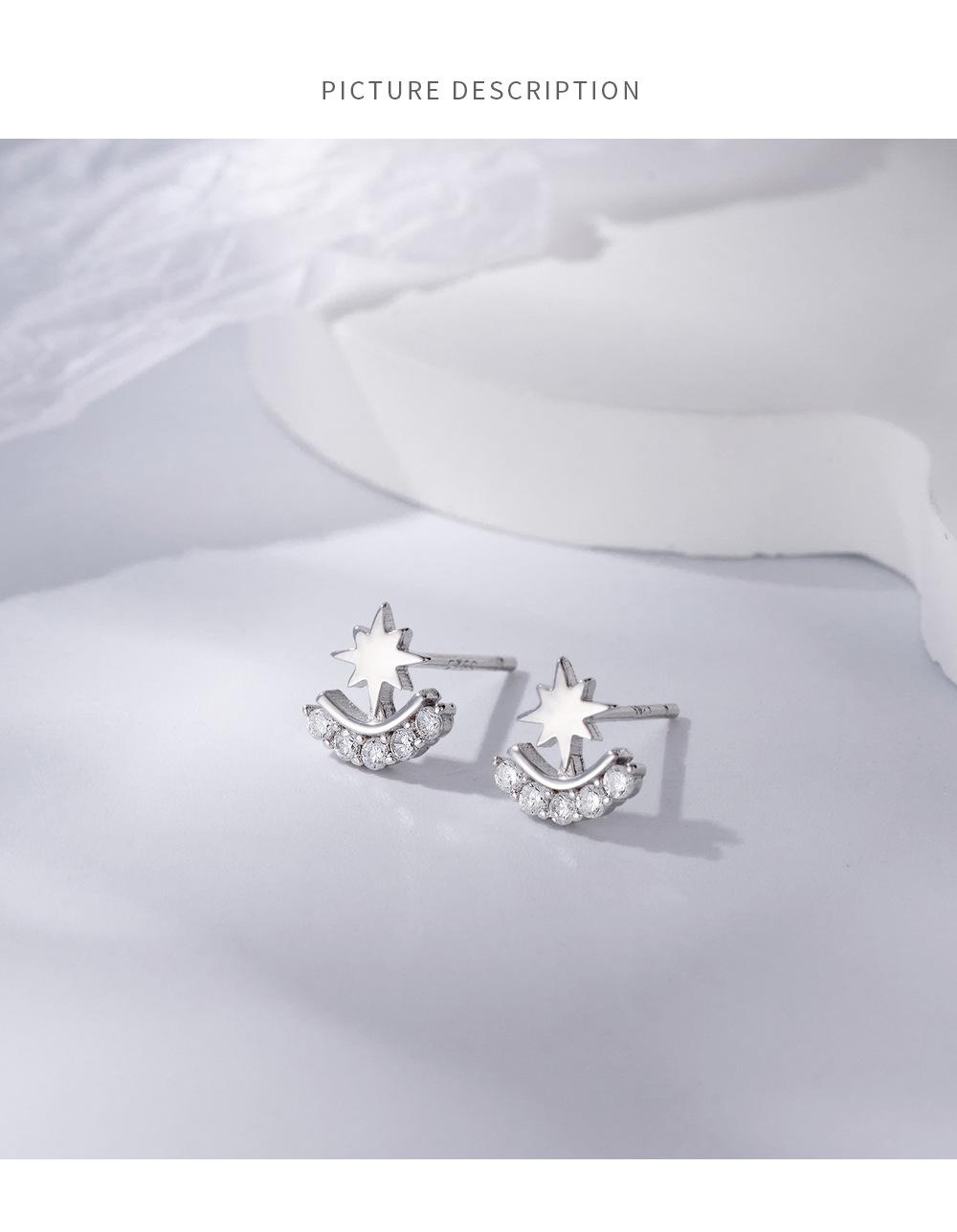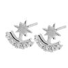 Brincos de Prata de Lei S925 com Carinha Sorridente e Estrela Estilo Coreano Joias Elegantes Personalizadas Pregos para Cartilagem da Orelha Brincos da Moda com Brilho Estelar Acessórios para Mulheres