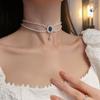 Colar francês retrô com pérolas e zircônias quadradas e diamantes, corrente de clavícula de luxo, atacado