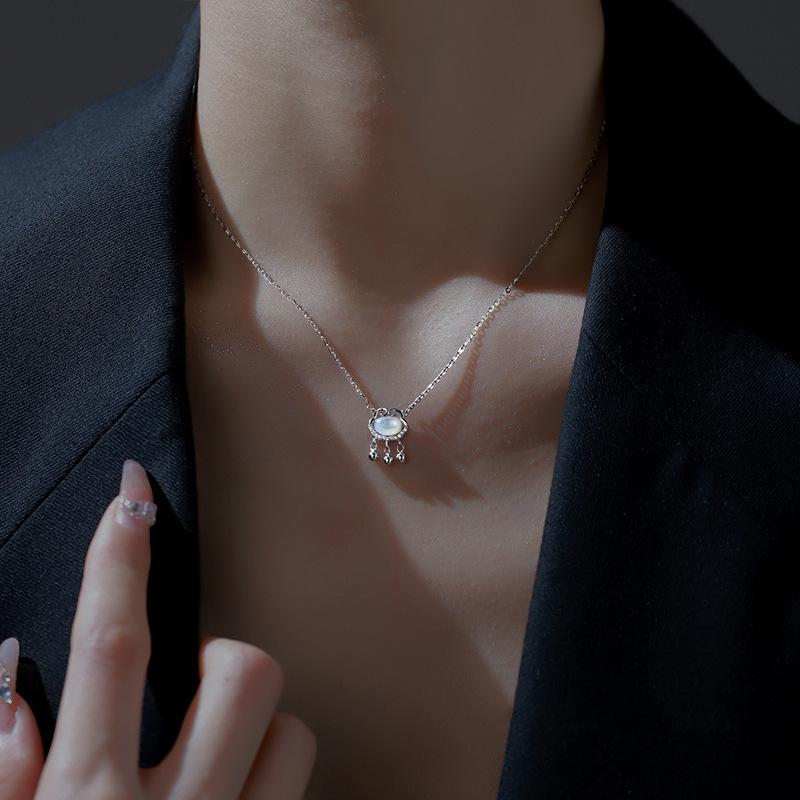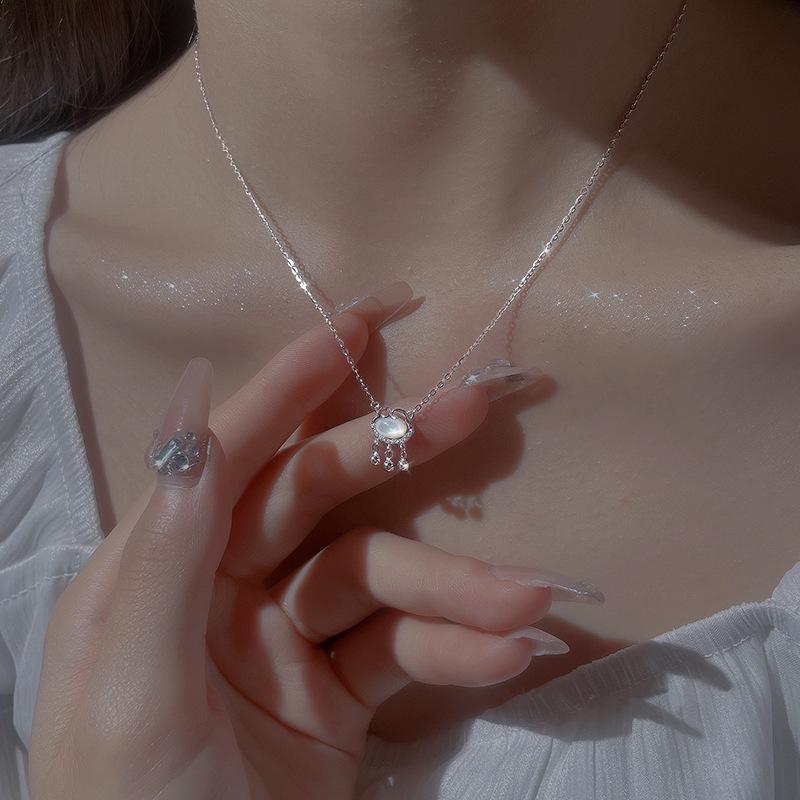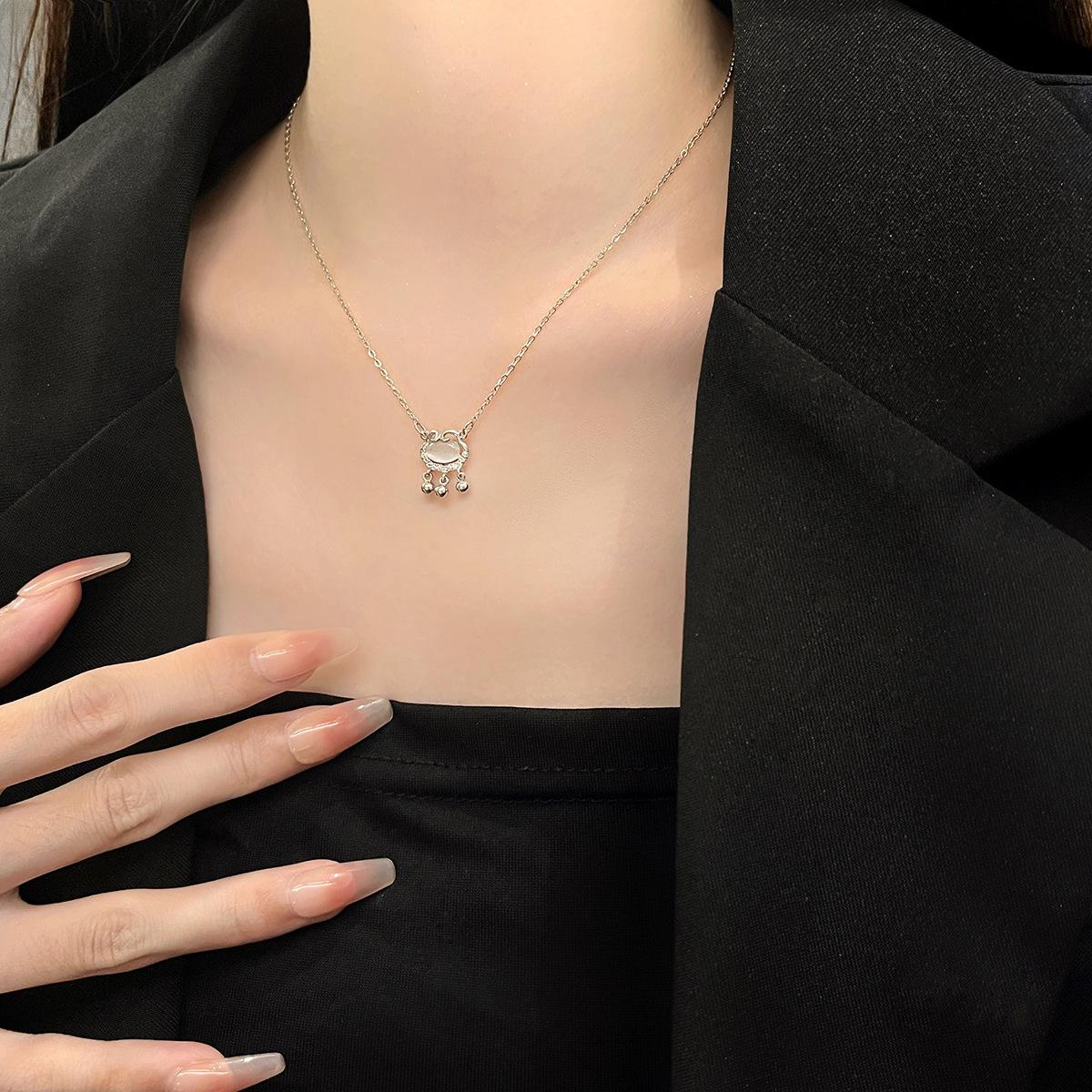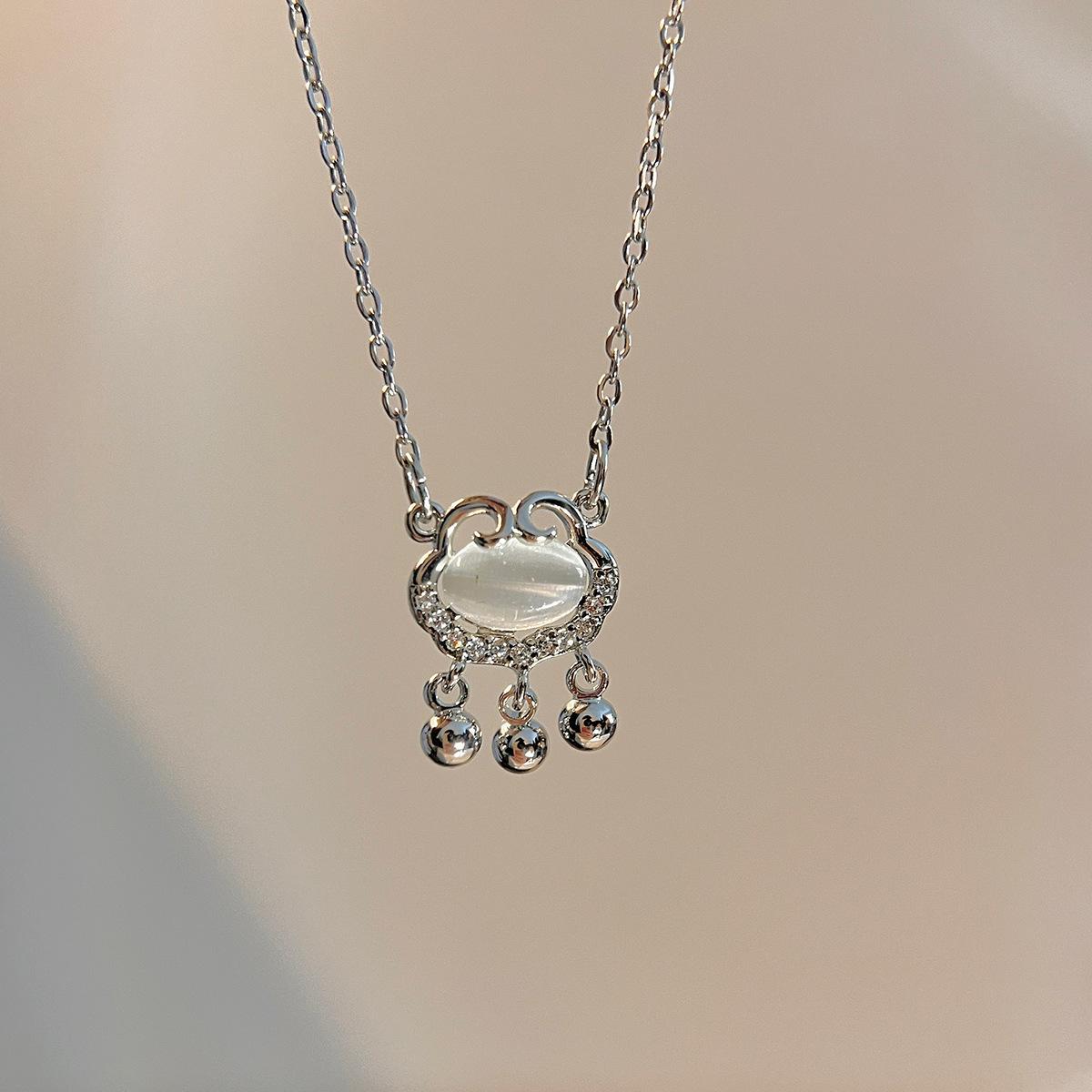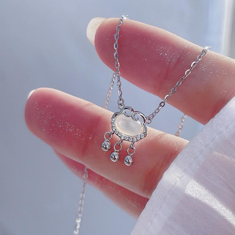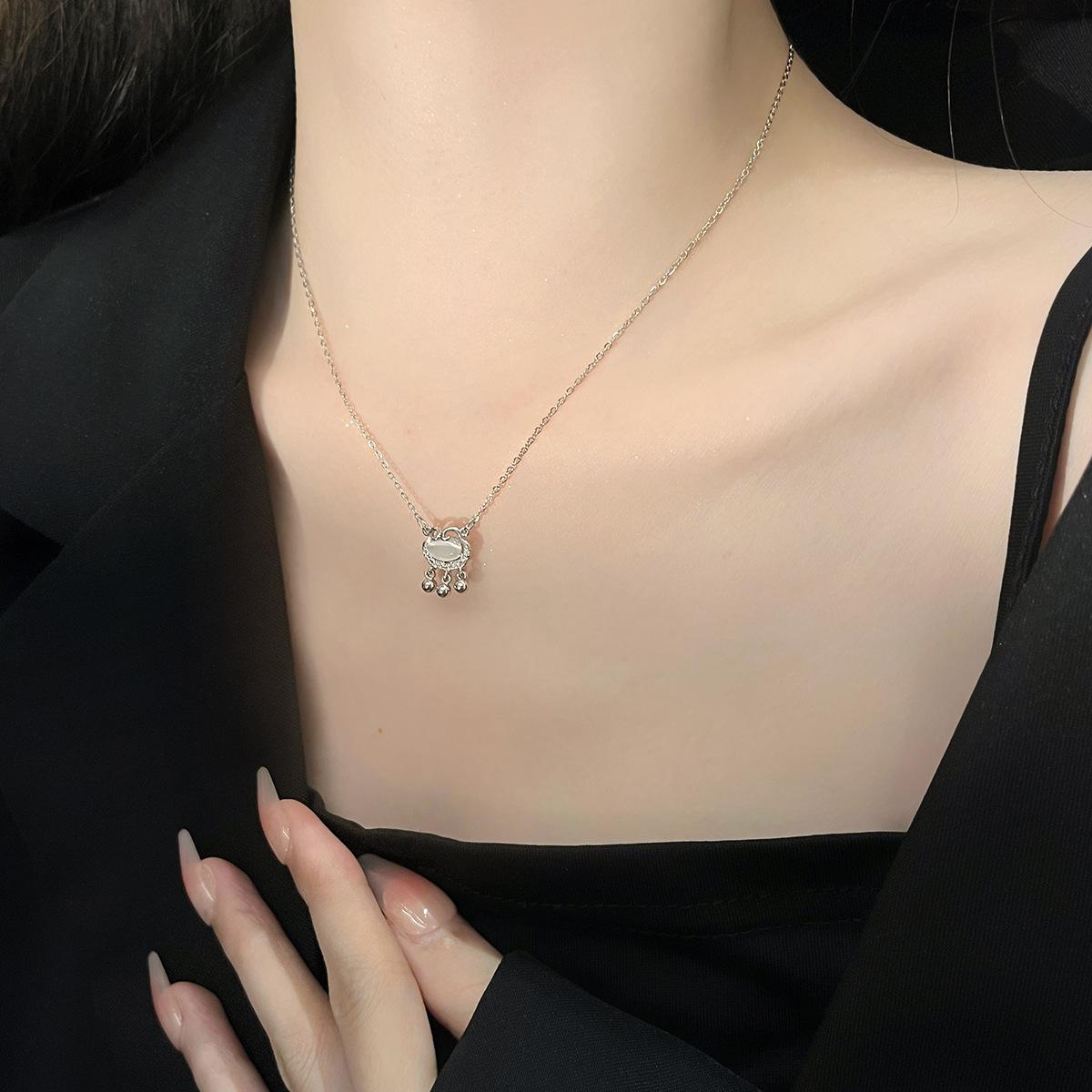 Colar de Bloqueio de Paz de Calcedônia Branca Verão Feminino Luz de Luxo Nicho Design Sense Xiangyun Colar de Bloqueio de Longa Vida para Meninas