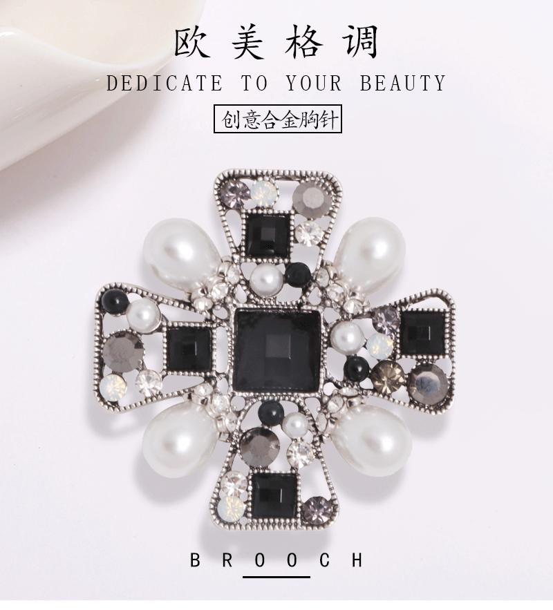 Broche de Pérola Elegante Elegante Retro de Venda Quente Transfronteiriça High-end Cross Broche de Acessórios de Pino de Comércio Exterior Feminino