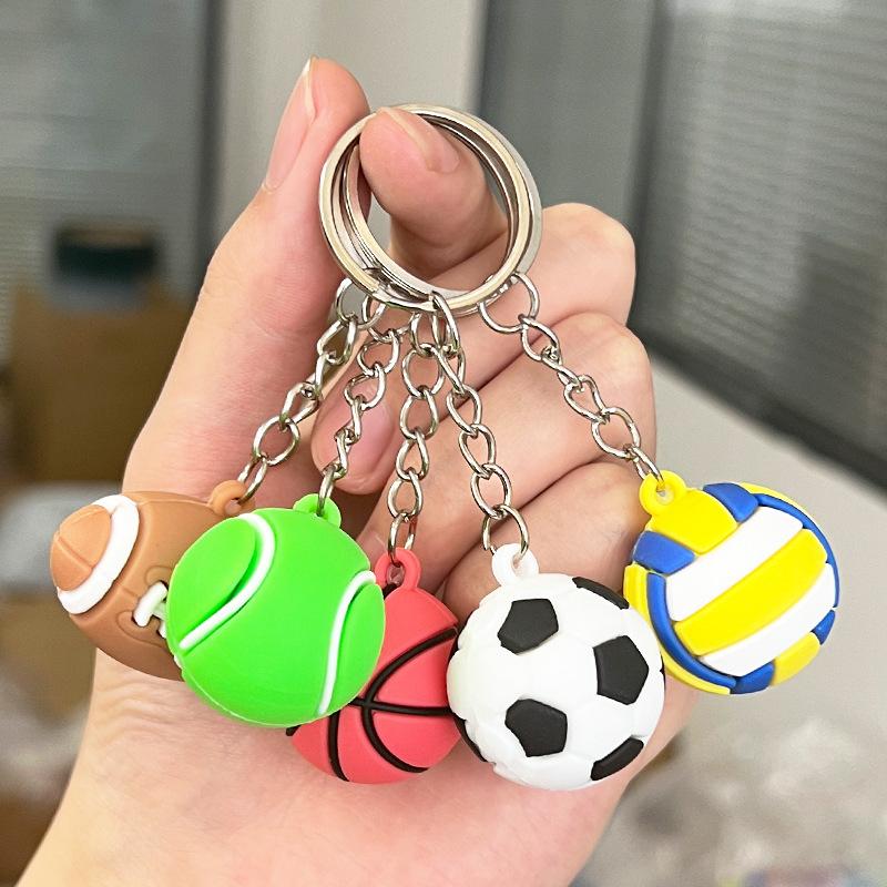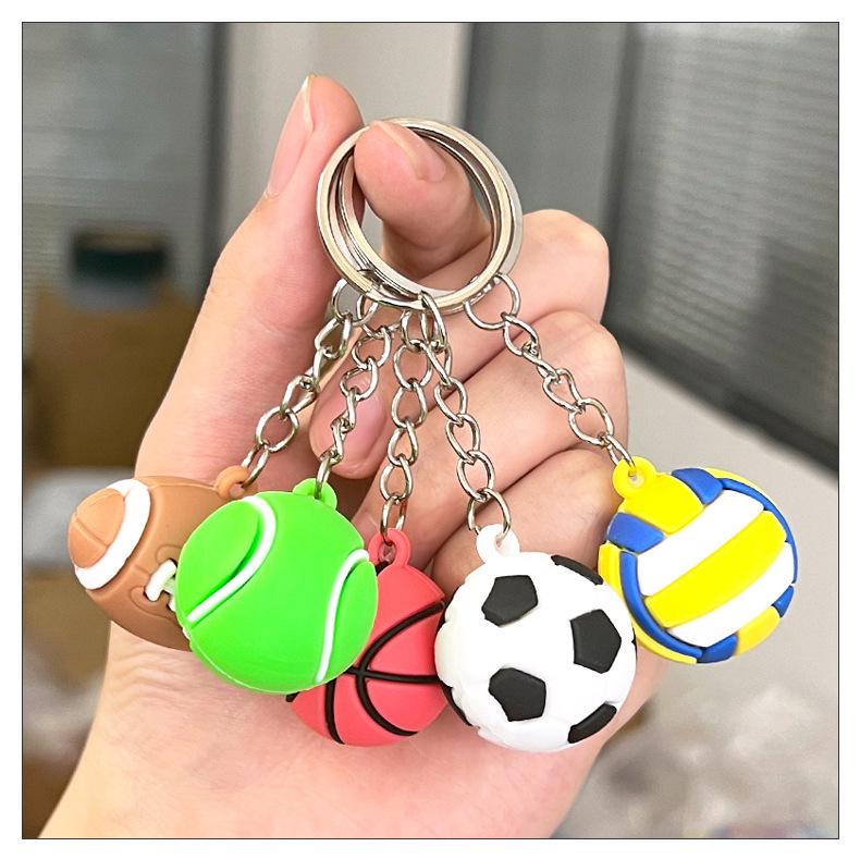 Transfronteiriço novo tridimensional bola de futebol basquete futebol chaveiro divertido criativo saco pingente chaveiro