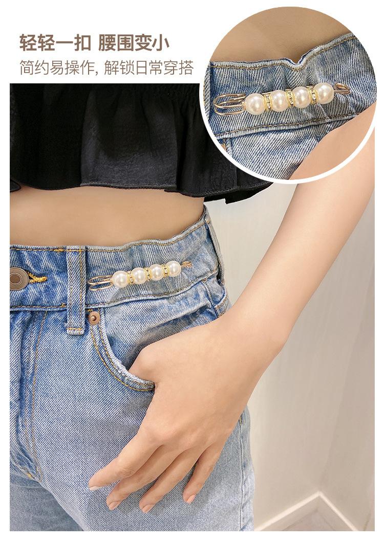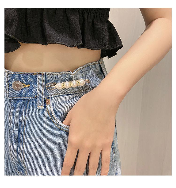 Broche pérola cintura pino nova calça cintura pequeno artefato saia roupas fixas clipe cintura grande ajuste anti-fivela leve