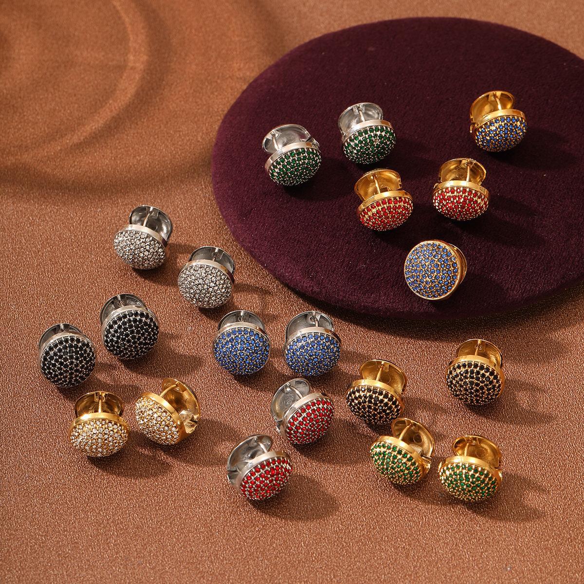 Brincos de orelha de aço titânio com diamantes redondos retrô franceses, elegantes, leves, luxuosos, de alta qualidade, em aço inoxidável