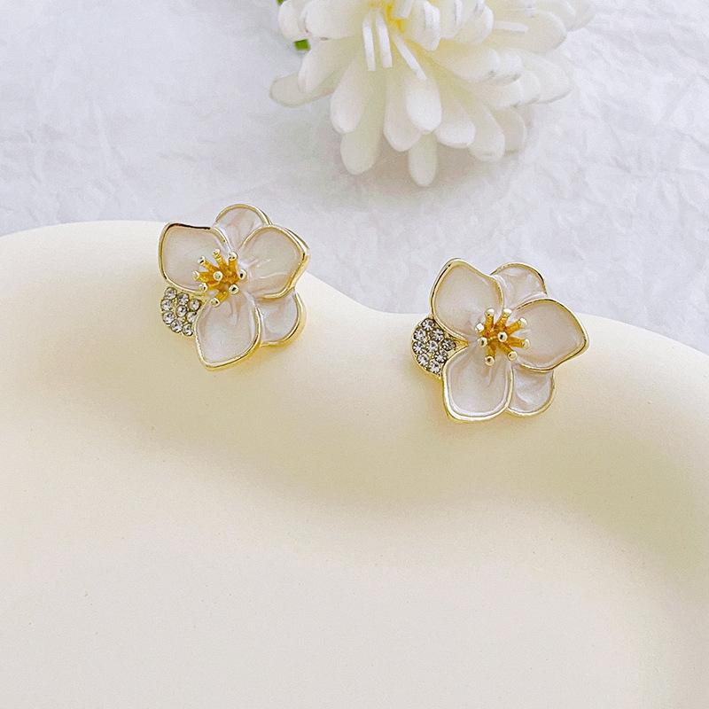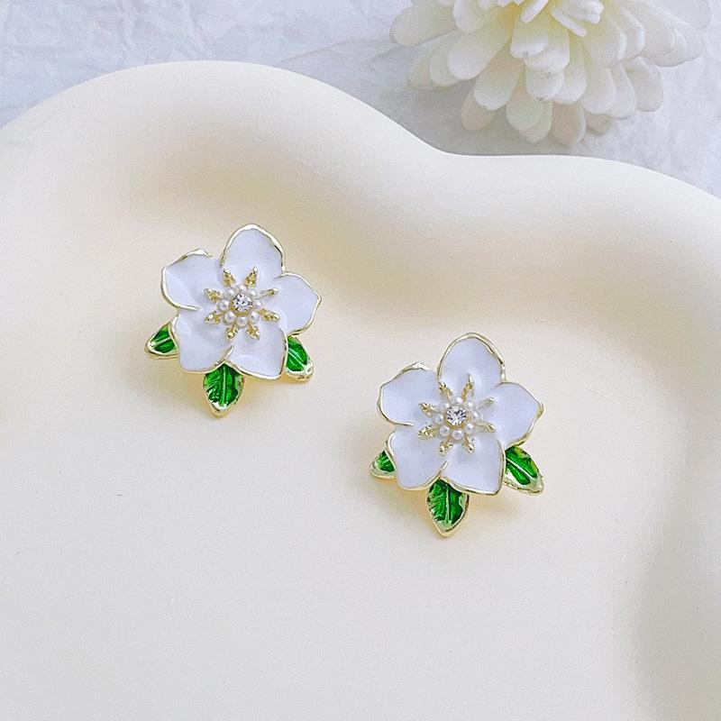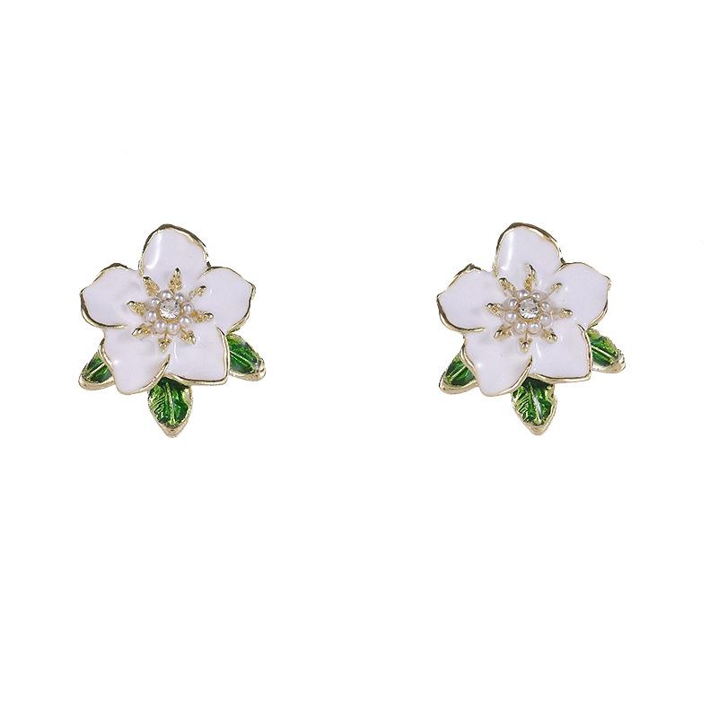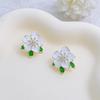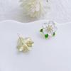 Flor verde incrustada strass nicho brincos elegante brincos simples doce brincos frescos brincos femininos jóias brincos por atacado