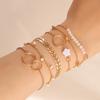 Pulseira Simples Geométrica de Círculo Mais Vendida Transfronteiriça, Conjunto de 6 Peças, Adequado para o Estilo Europeu e Americano ins, Pulseira de Círculo de Folha com Borla de Flor