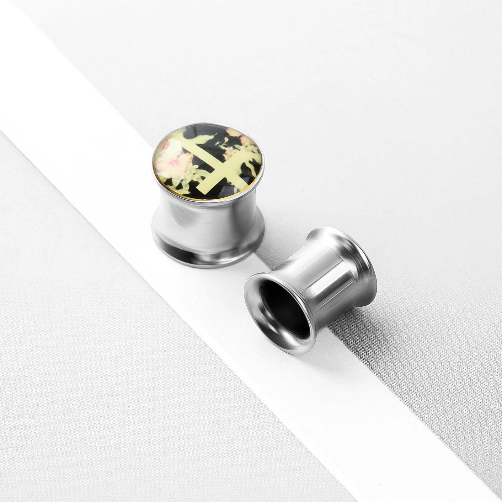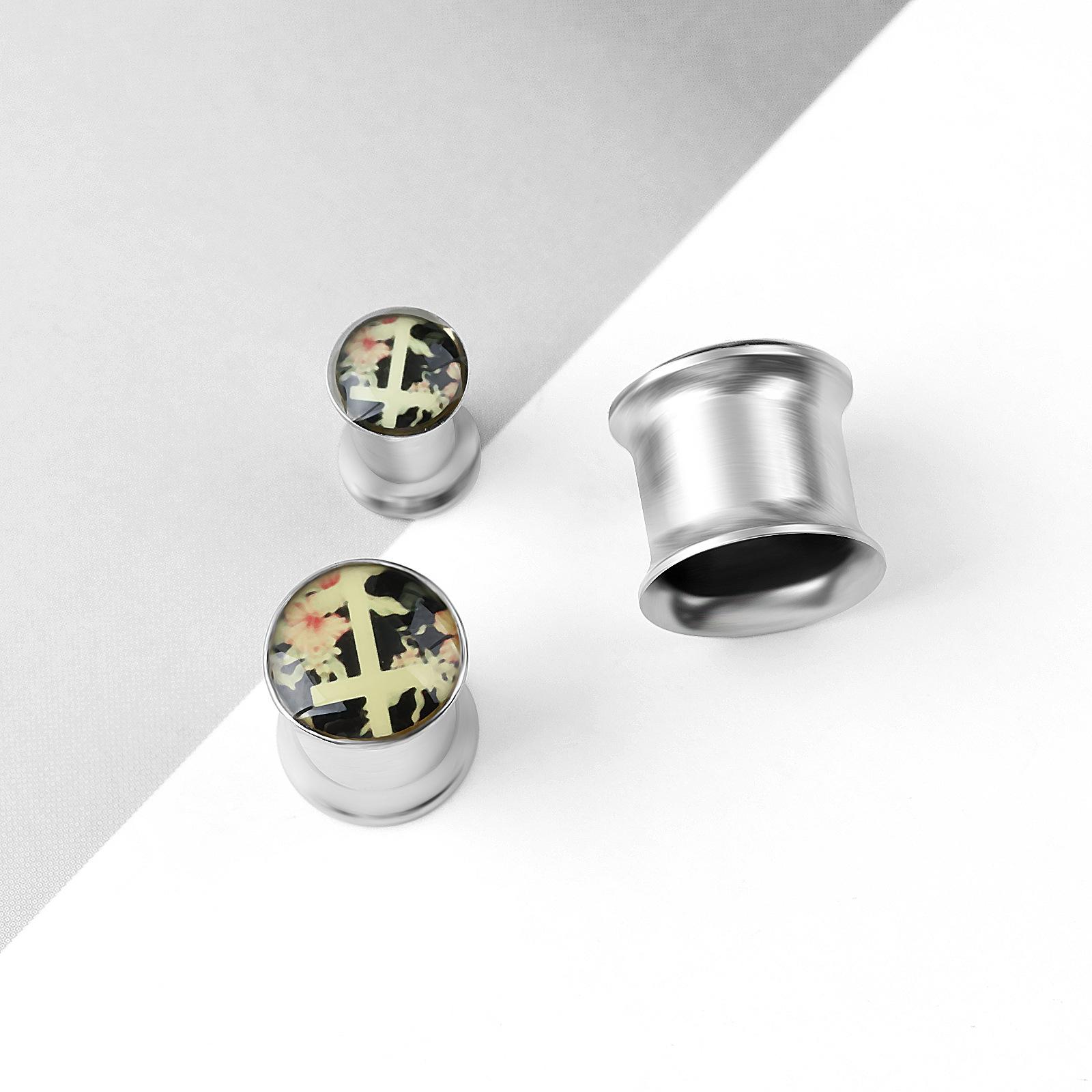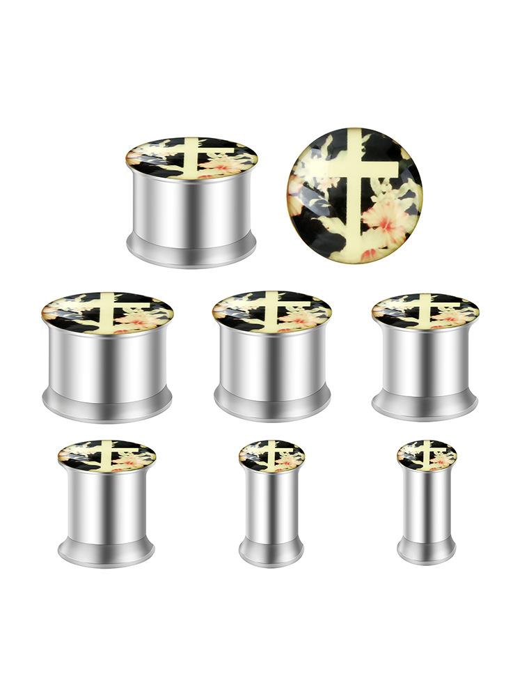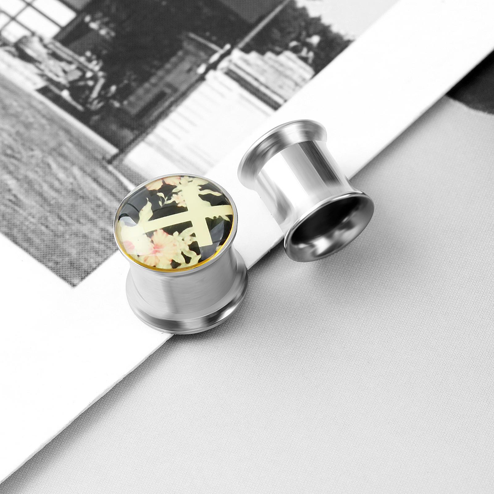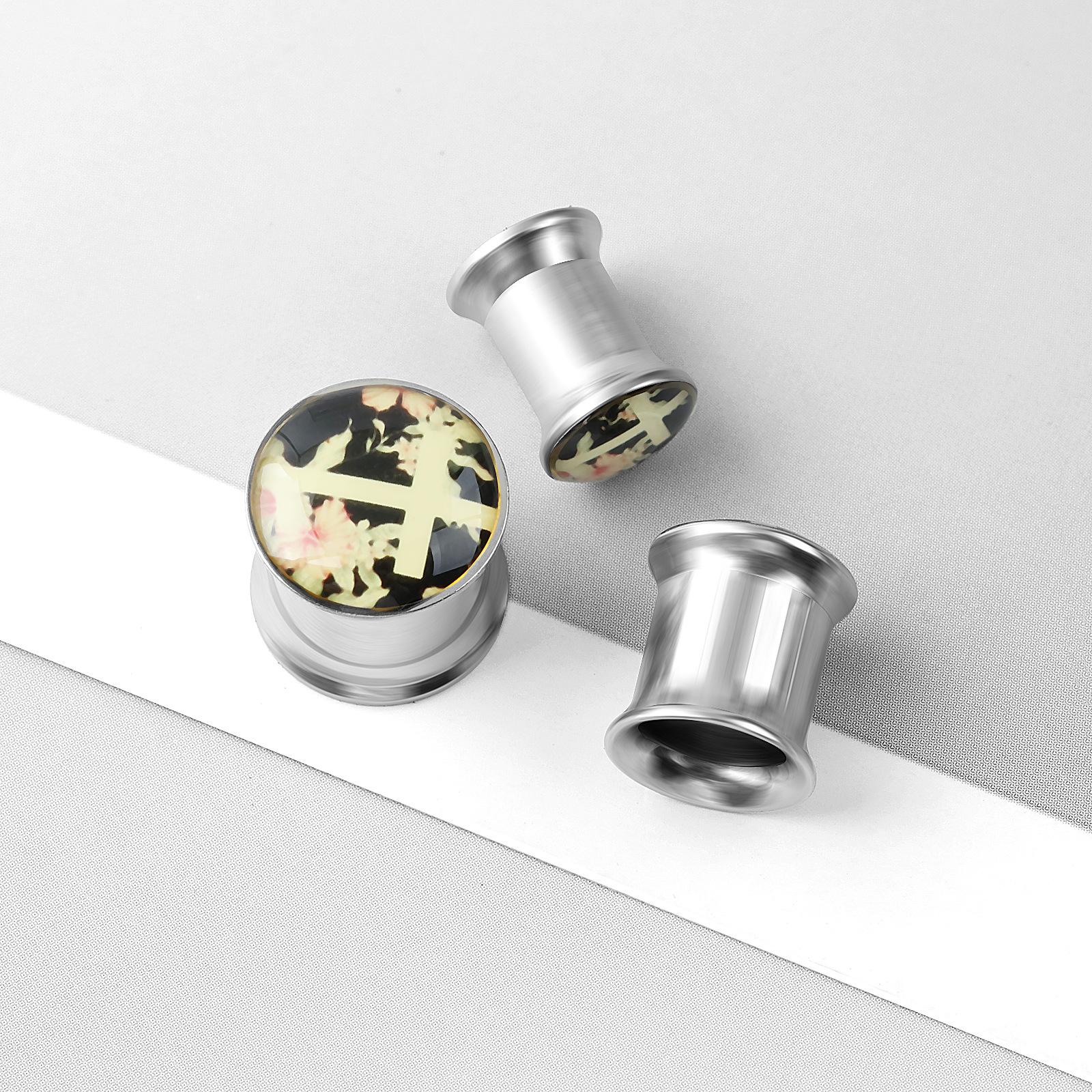 E-commerce internacional de moda em aço inoxidável, chifre com gotejamento de óleo, expansor de orelha, piercing de orelha em forma de cruz, joias