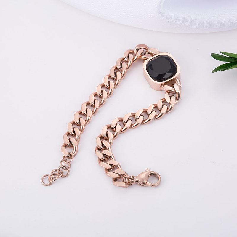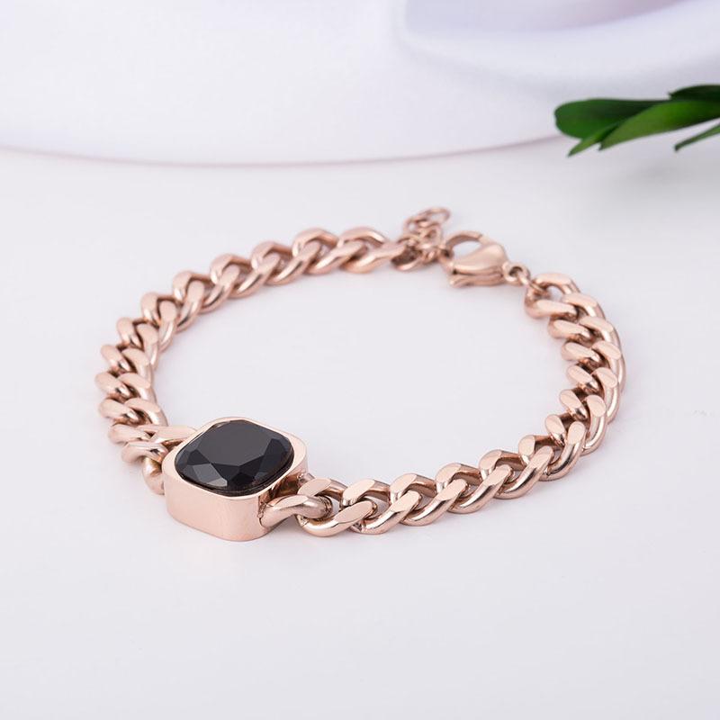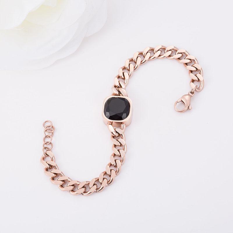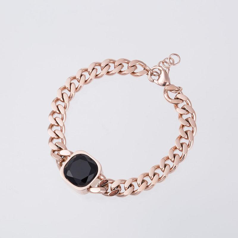 Pulseira de corrente simples quadrada de aço titânio europeia e americana, moda, folheada a ouro rosa, joia moderna, pulseira masculina e feminina, atacado