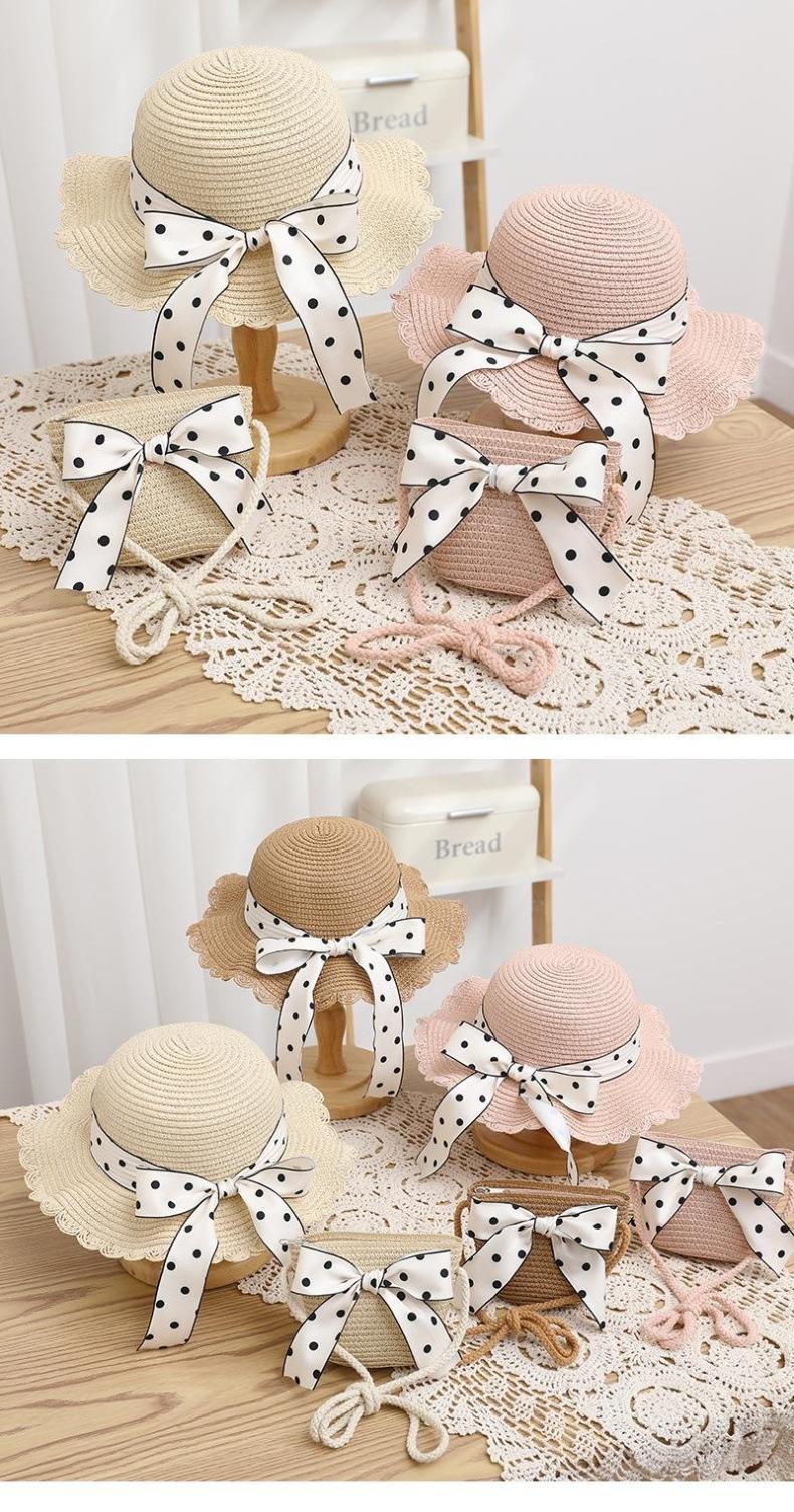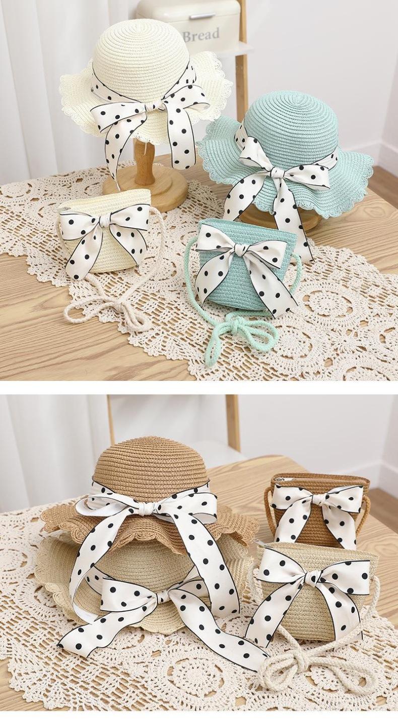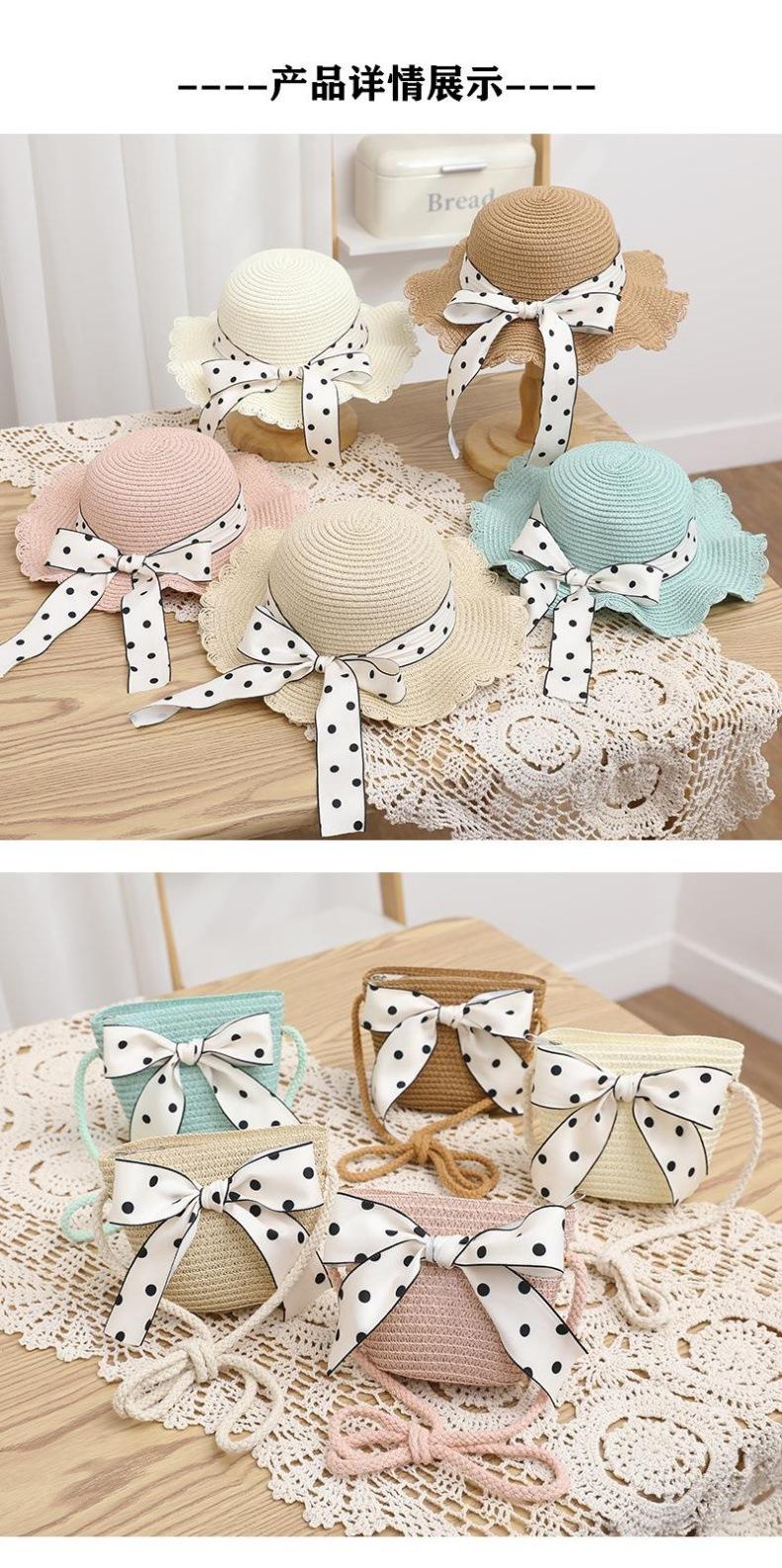 Chapéu de guarda-sol para meninas Chapéu de palha infantil Temporada Bebê Protetor solar Chapéu Bolsa Chapéu Menina Praia Chapéu Chapéu de sol