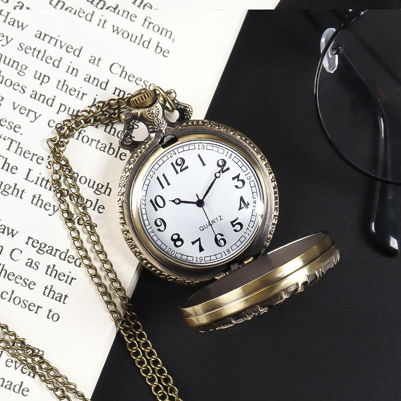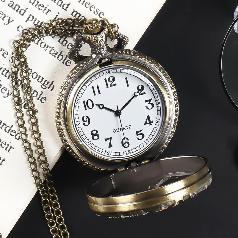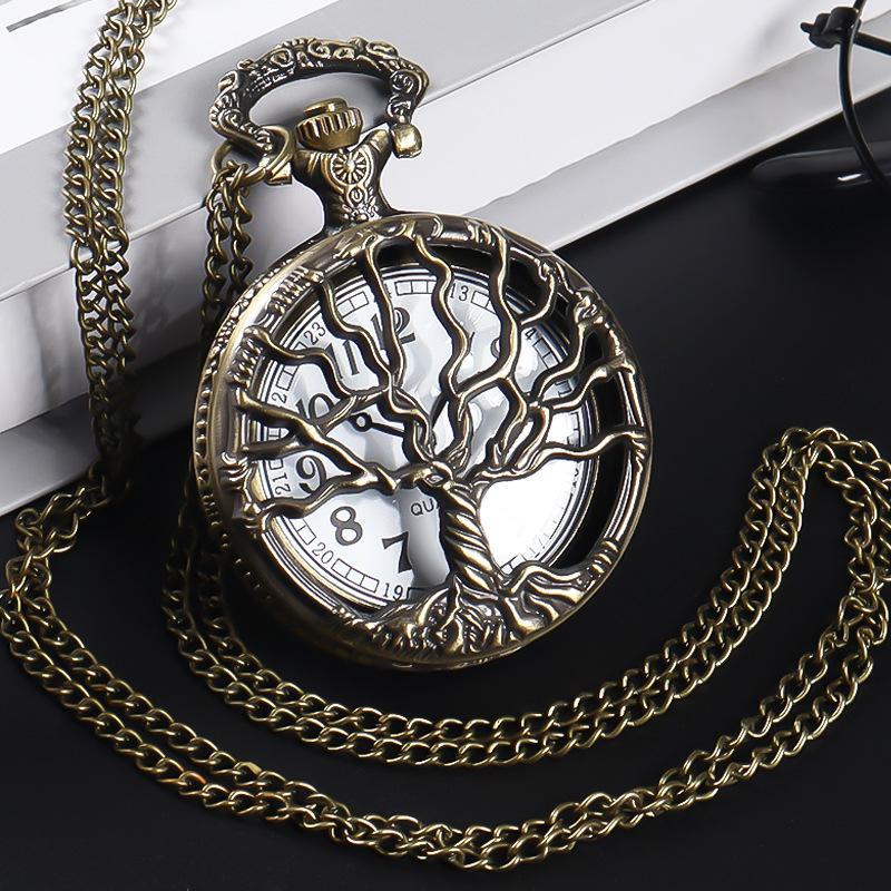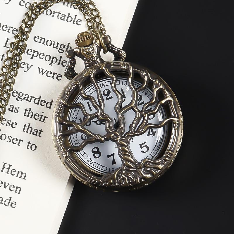 Novo relógio de bolso Flip, relógio criativo de quartzo com árvore de vida simples, relógio de corrente com folha de bordo, relógio de estudante para exames, atacado
