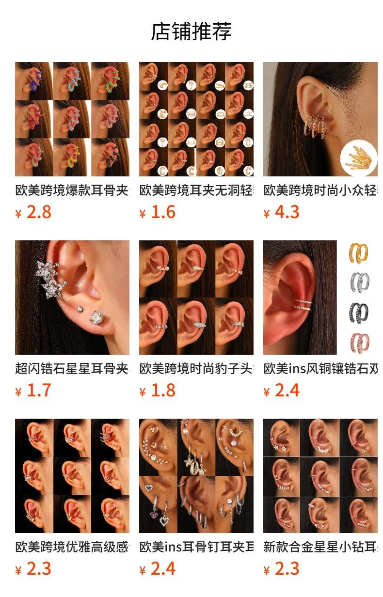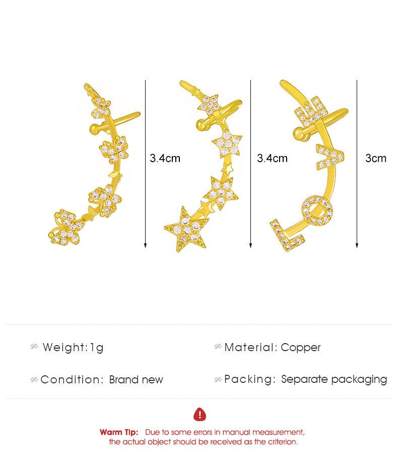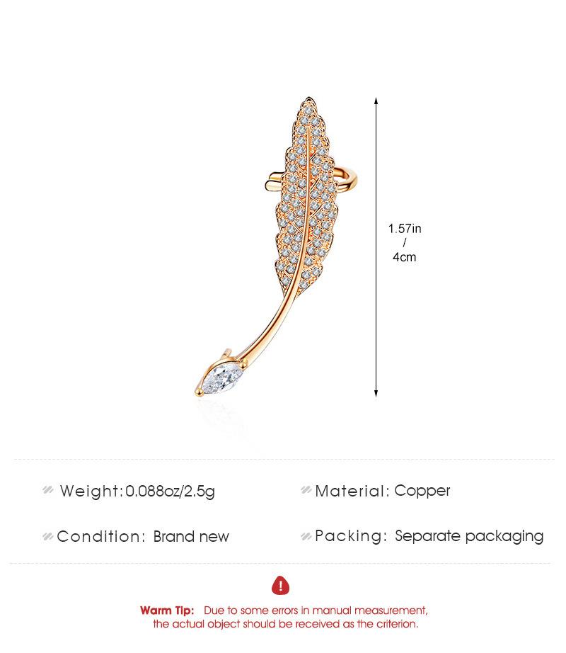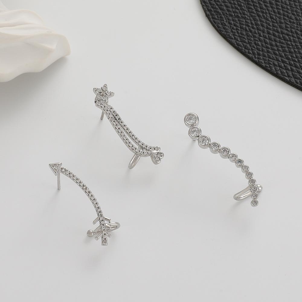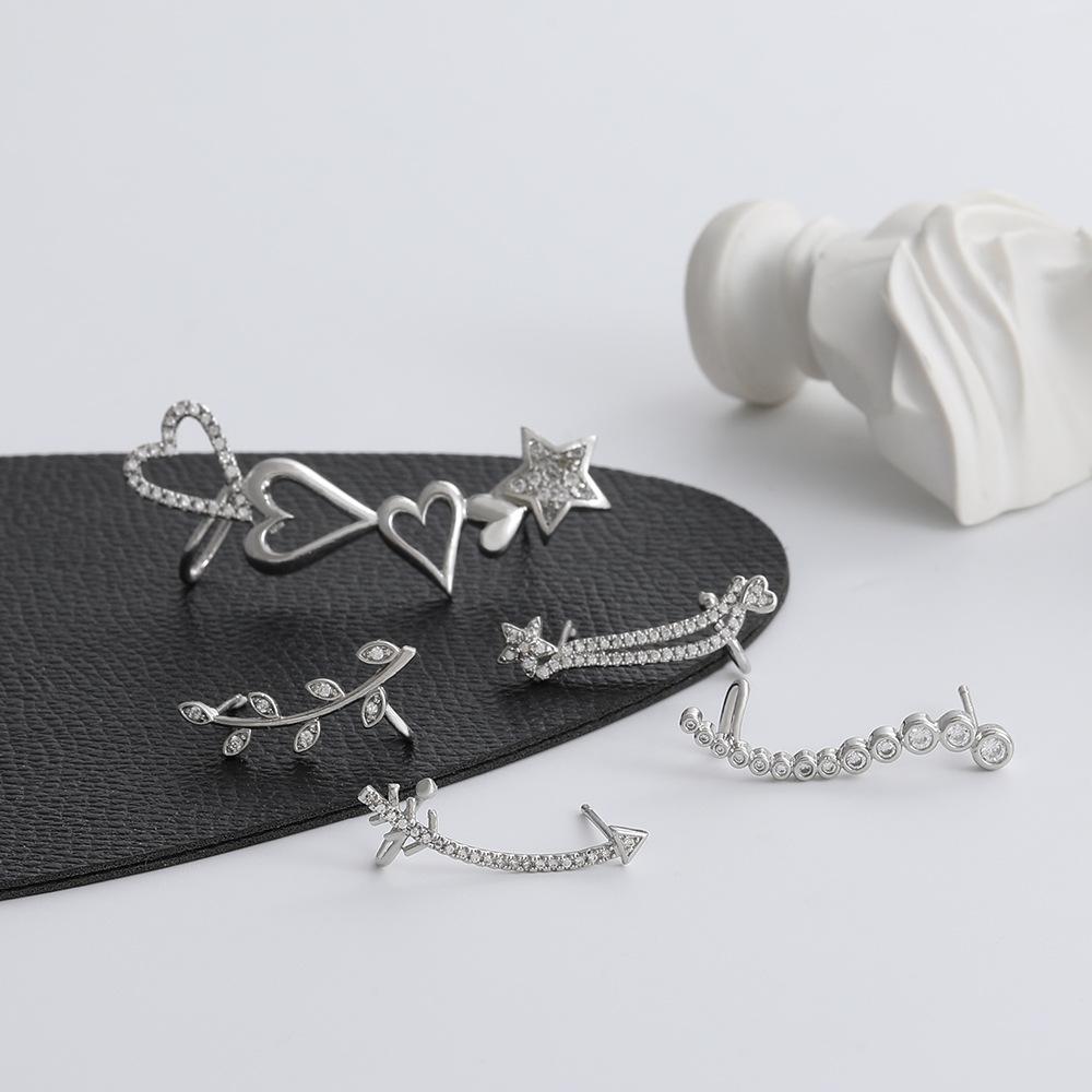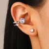 Terno de clipe de orelha de zircão mais vendido no exterior, elegante e moderno, clipe de orelha de folha, brincos simples e distintos