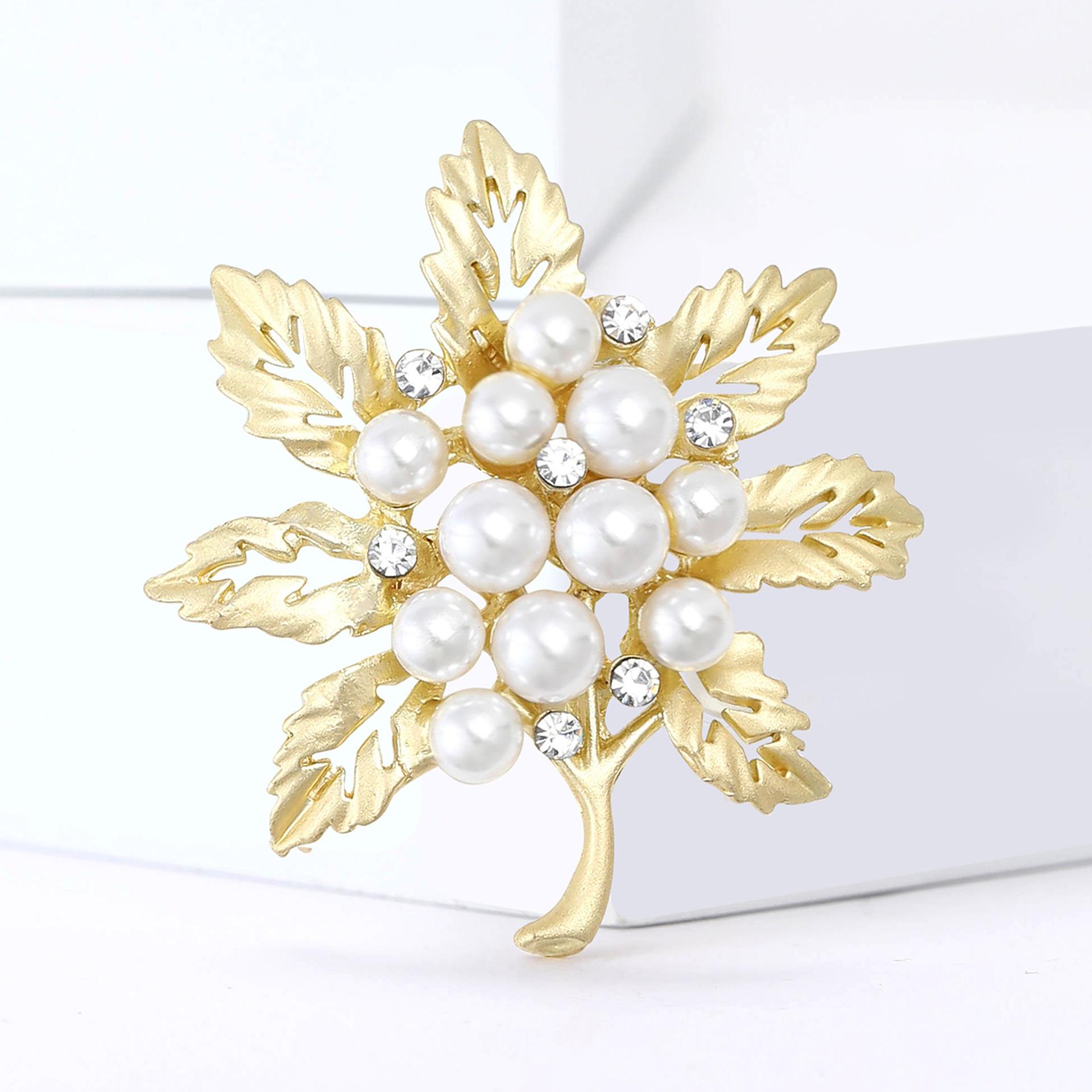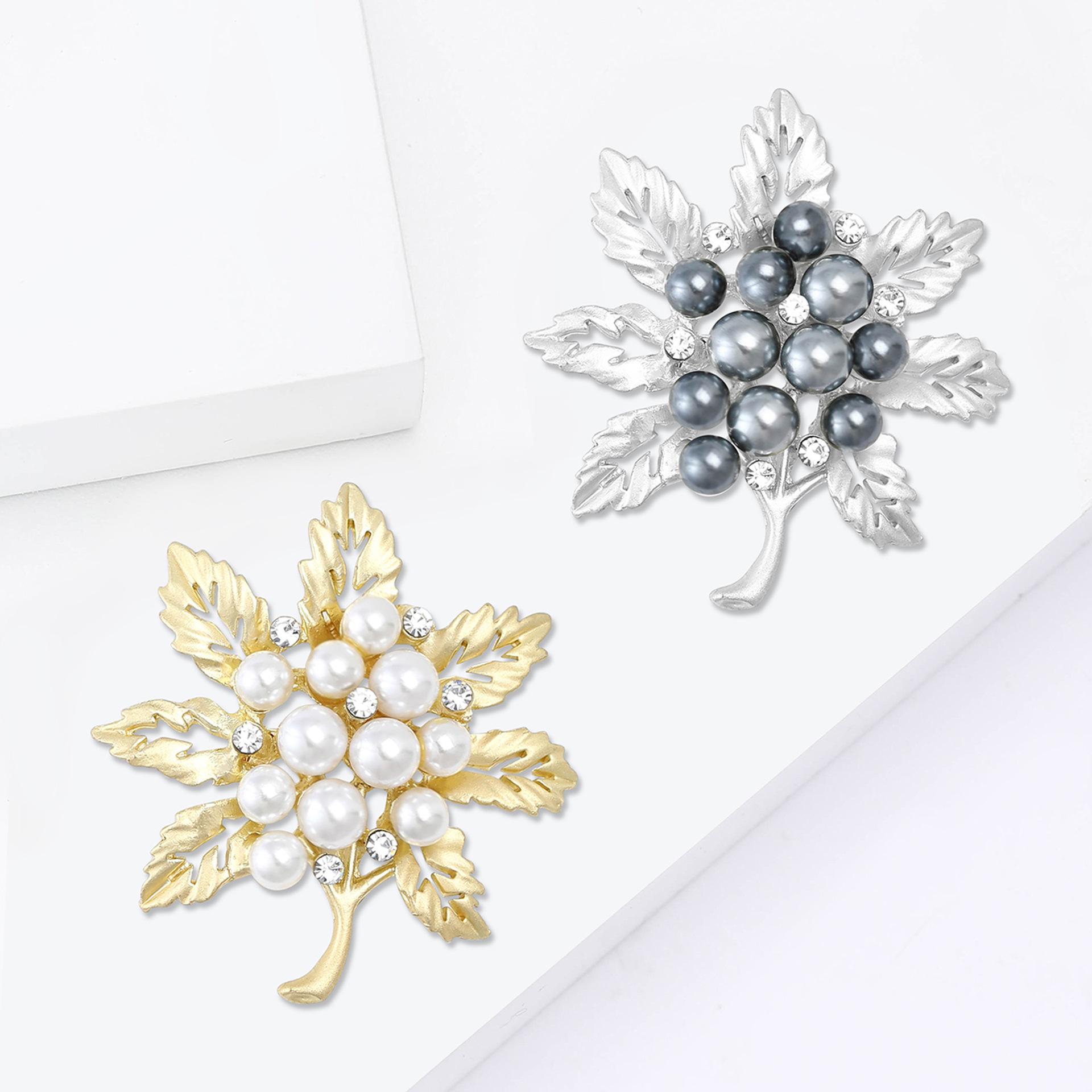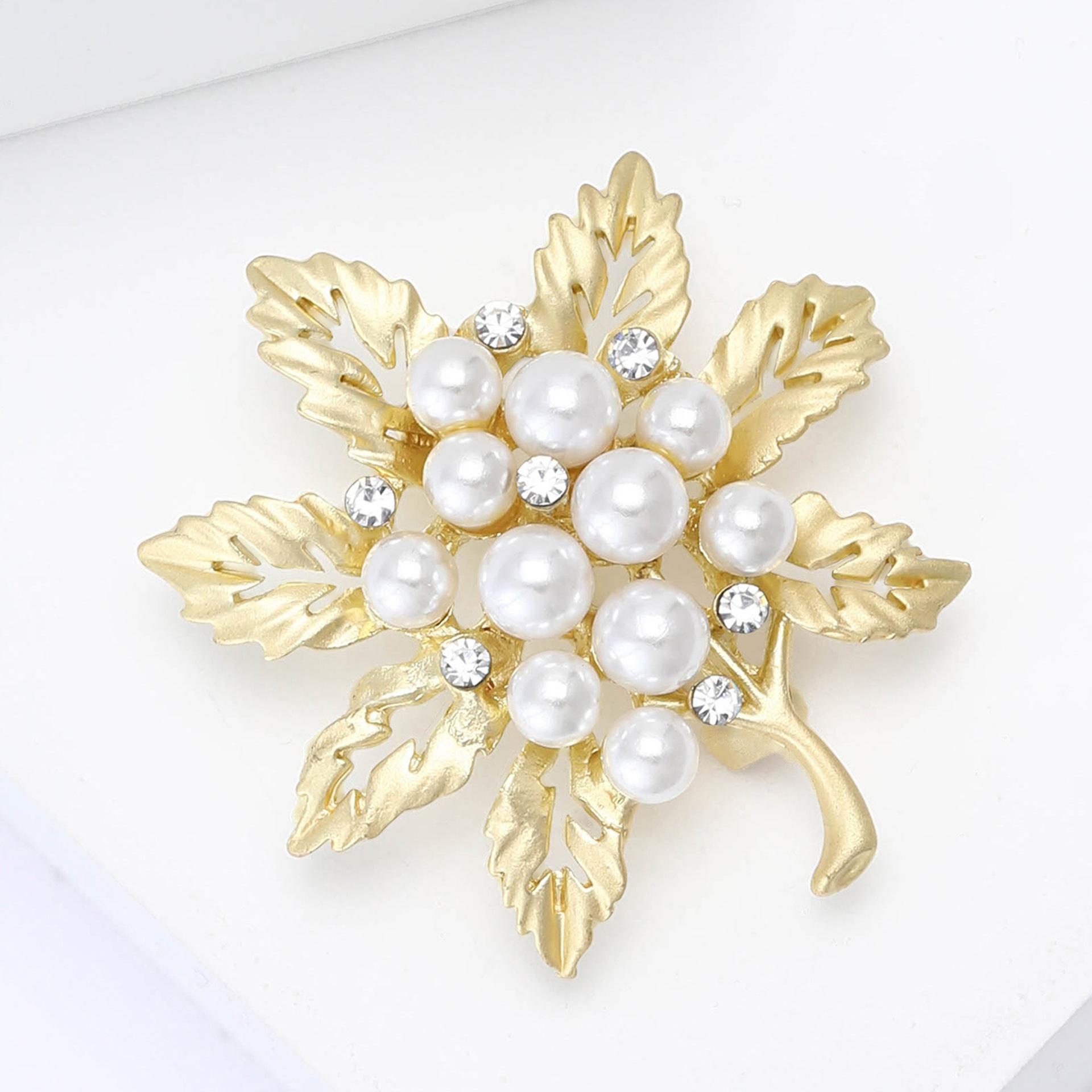 Compre Broche de folha fosca de pérola de liga de moda coreana requintado conjunto de terno feminino corsage joias alfinete no atacado no Joom.pro