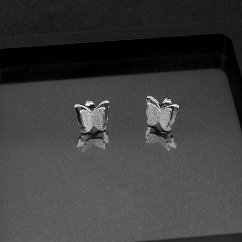 Moda simples novos brincos de borboleta dupla simples novos aço inoxidável borboleta voando lindos pequenos brincos atacado