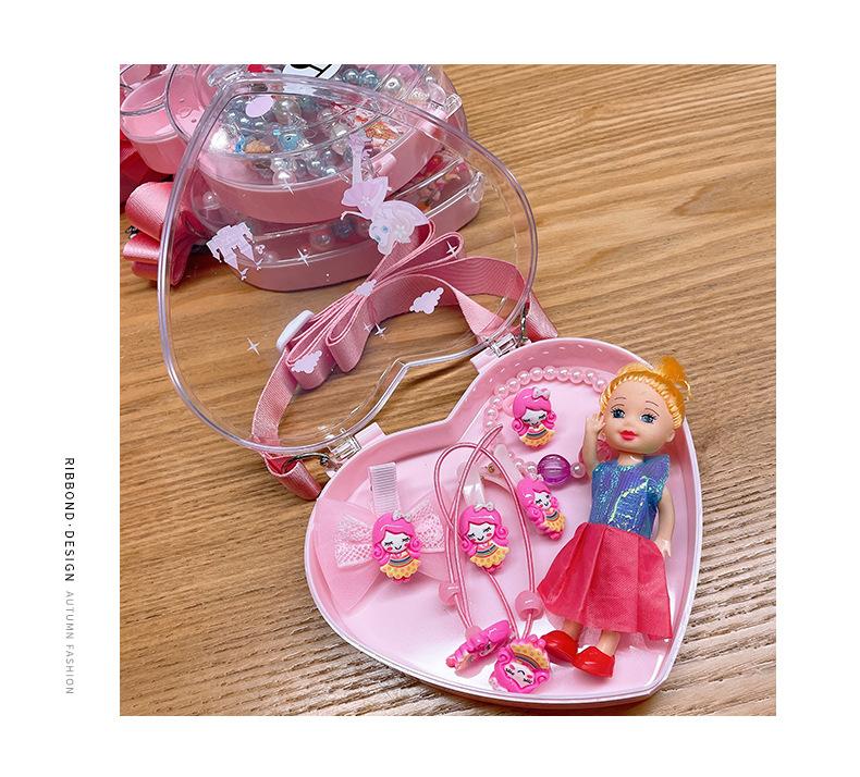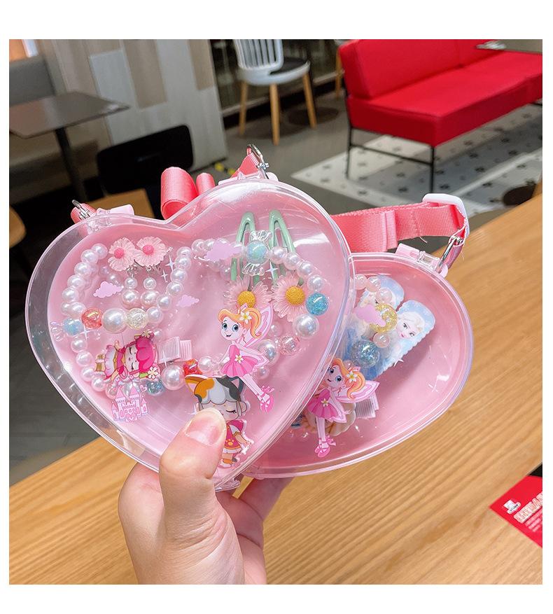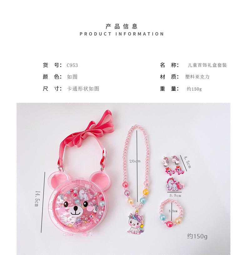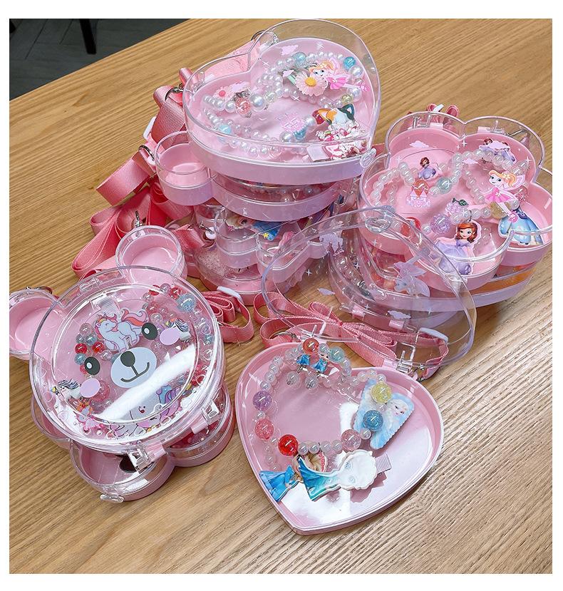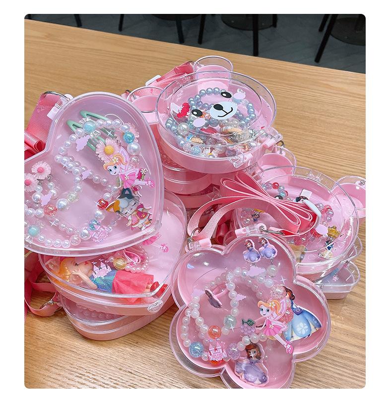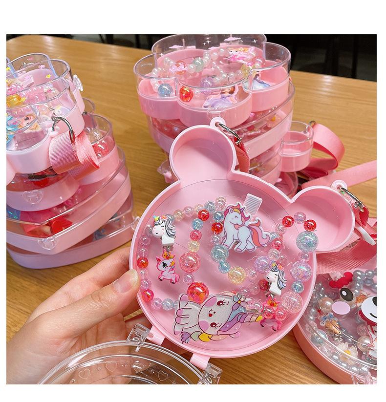 Jóias infantis terno dos desenhos animados mochila pequena caixa de presente menina artesanal frisado princesa colar pulseira jóias presente