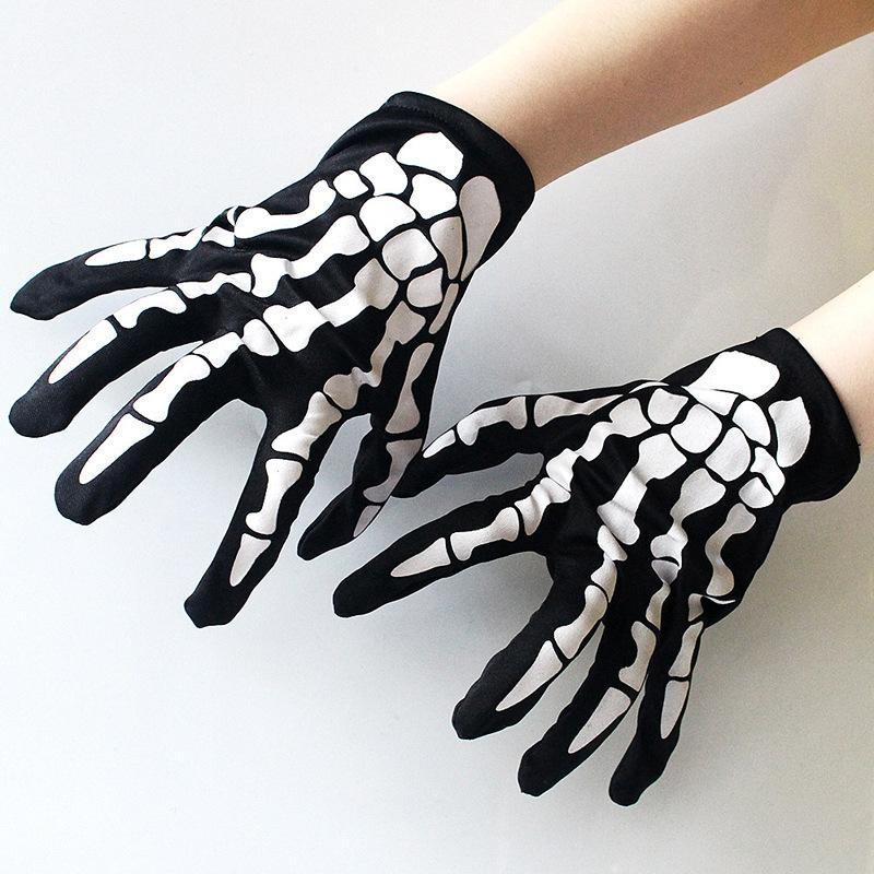 Luvas Adultas de Halloween com Estampa de Caveira Sensível ao Toque que Brilham no Escuro Fluorescentes para Ciclismo ao Ar Livre Quentes de Tricô Fantasma