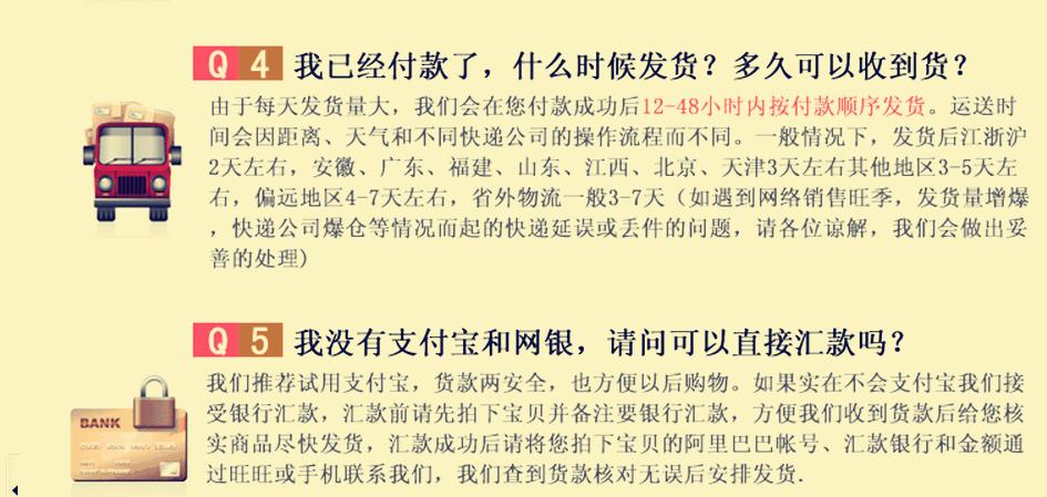 7. Problemas de entrega expressa: As empresas de entrega expressa com as quais nossa loja coopera geralmente chegam em horários normais. Às vezes, eles serão atrasados por um ou dois dias em circunstâncias especiais. Especialmente em caso de mau tempo e feriados legais, haverá atrasos. Devido aos diferentes prazos de entrega expressa em vários locais, pode não haver entrega nos finais de semana. Além disso, a qualidade dos vendedores de cada ponto de venda da empresa expressa também é diferente. Pode haver alguns fatores inesperados, como má atitude do vendedor em alguns pontos de venda ou embalagens danificadas, etc., que o vendedor não pode prever. . Resumindo, se você tiver alguma insatisfação, entre em contato conosco e nos comunicaremos ativamente com a empresa expressa para resolvê-la.