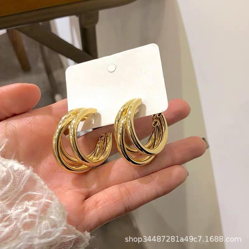 925 agulha de prata europeia e americana ins metal três anéis círculo brincos elegante atacado retro moderno brincos nicho orelha jóias