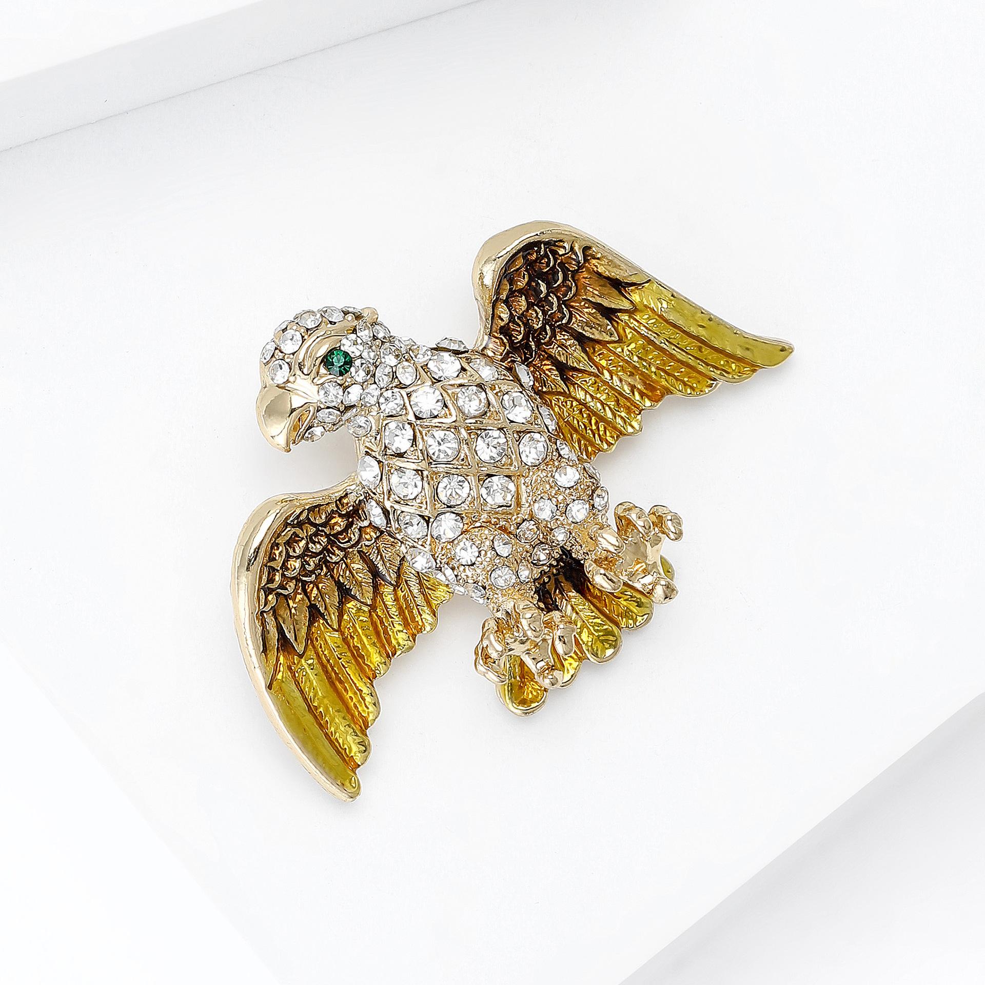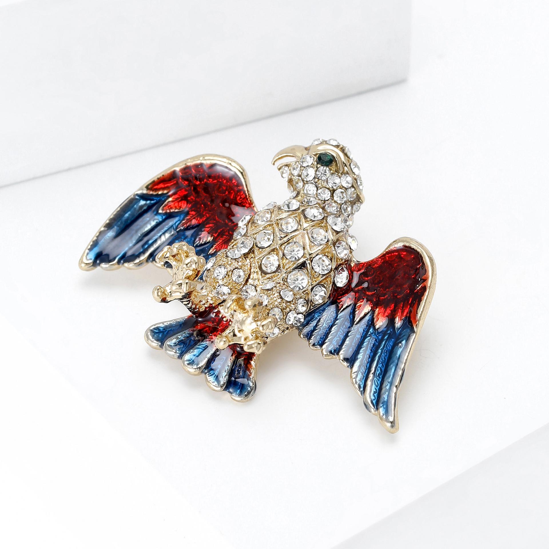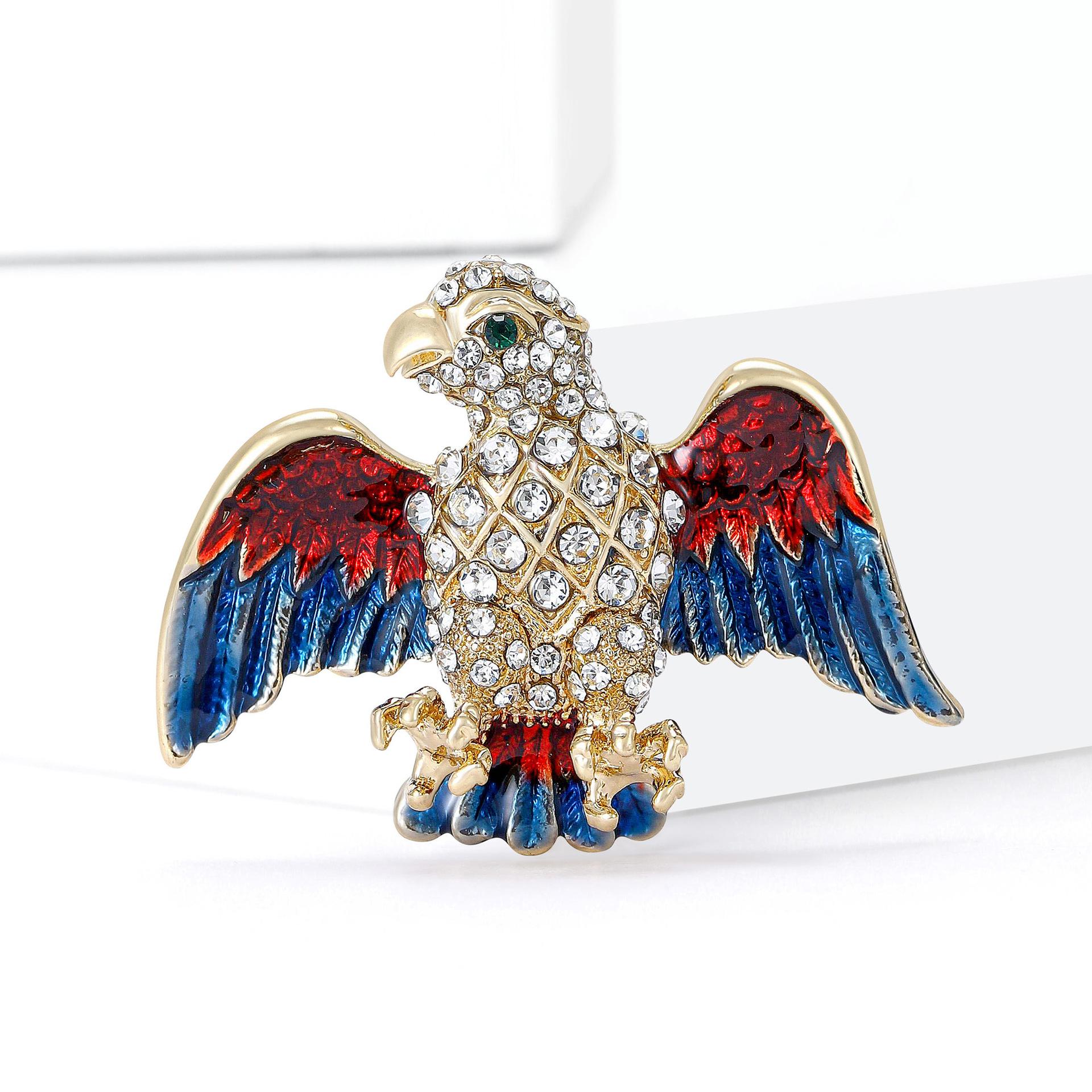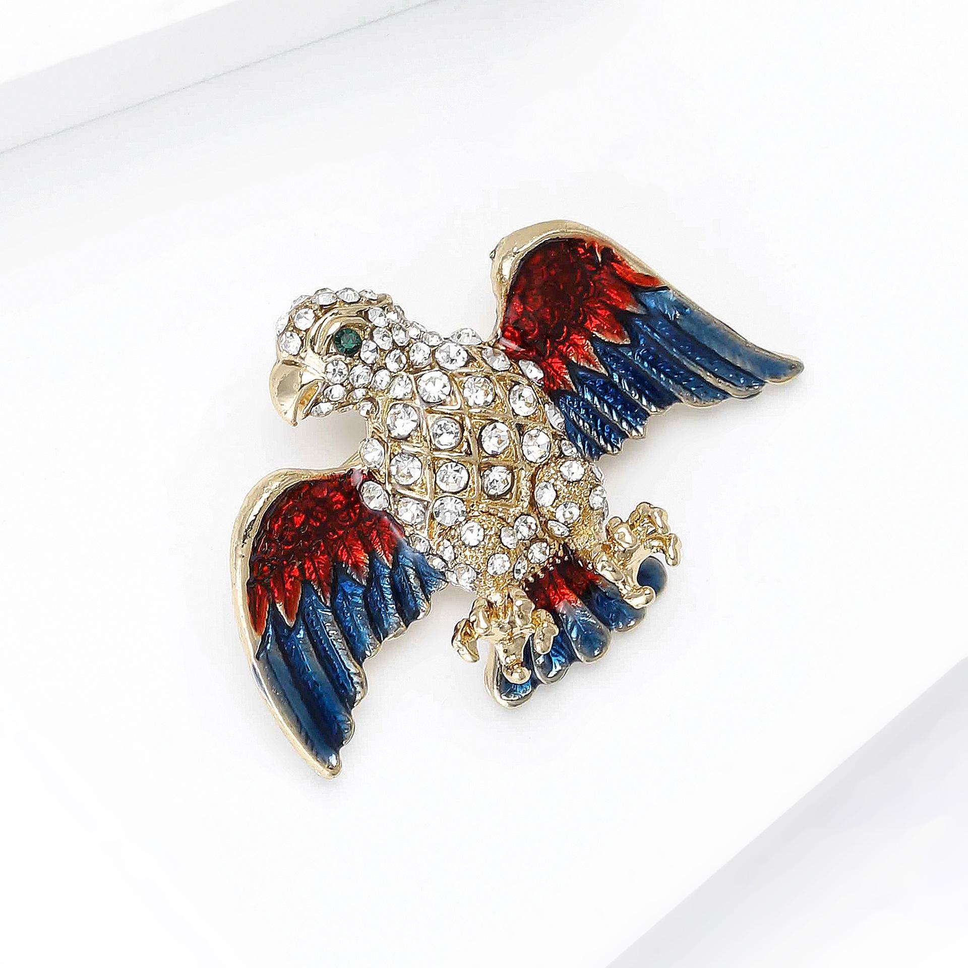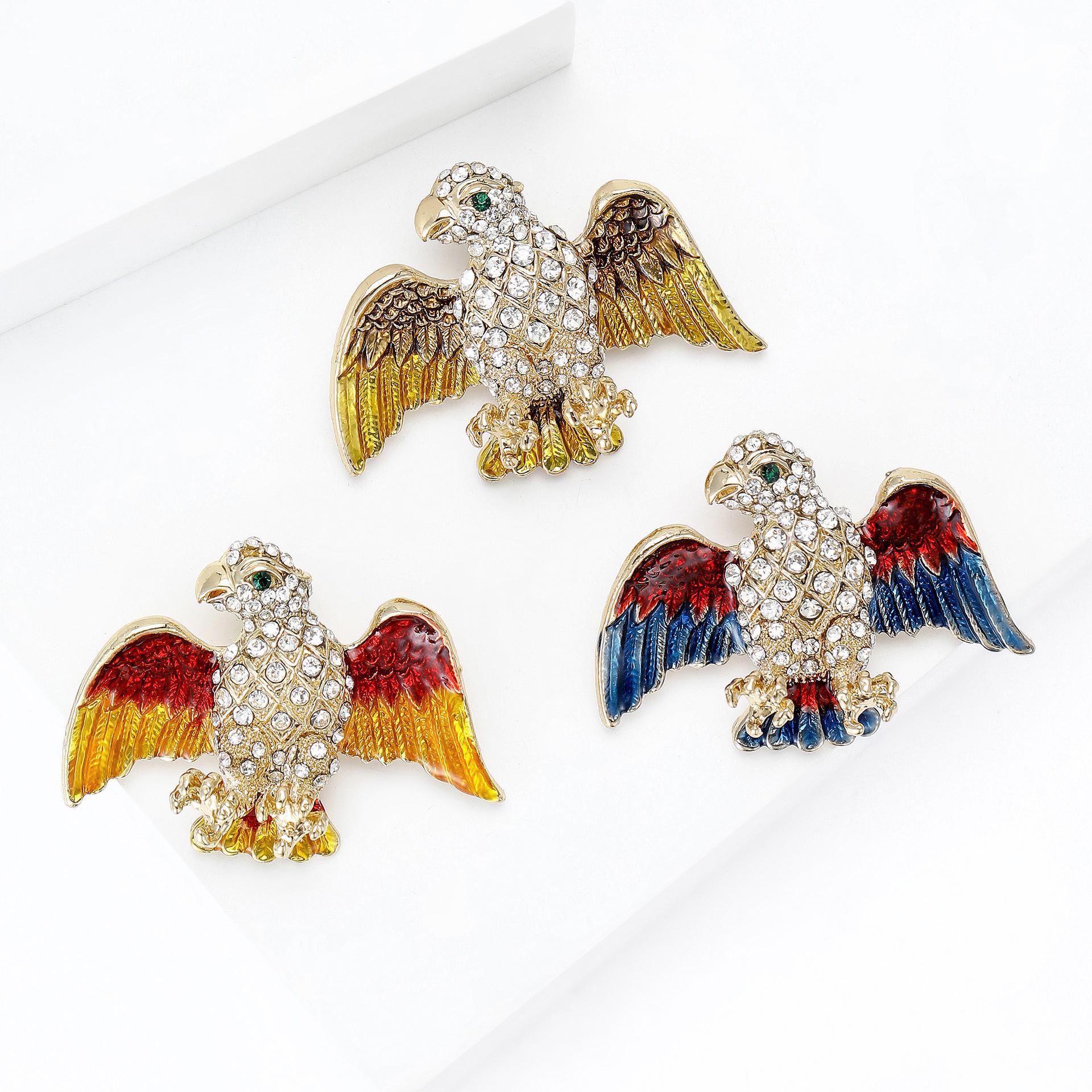 Broche de Águia em Liga de Novo Estilo Europeu e Americano com Gotejamento de Óleo e Incrustado de Diamantes, Acessórios de Vestuário de Lapela de Desenho Animado de Animal Moderno e Criativo