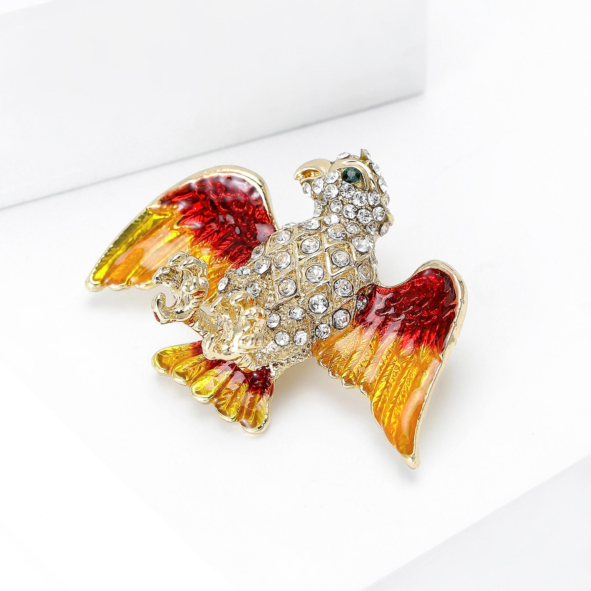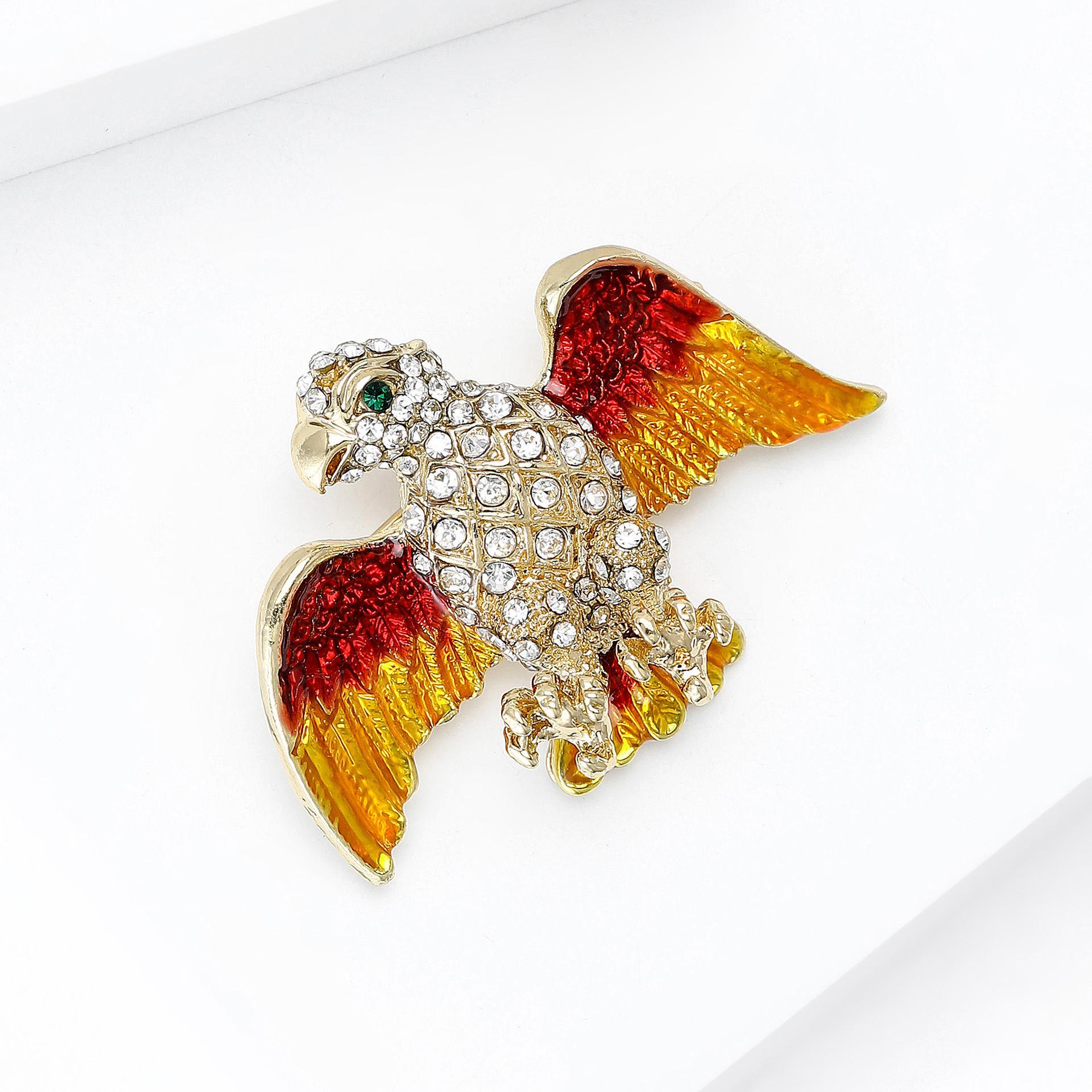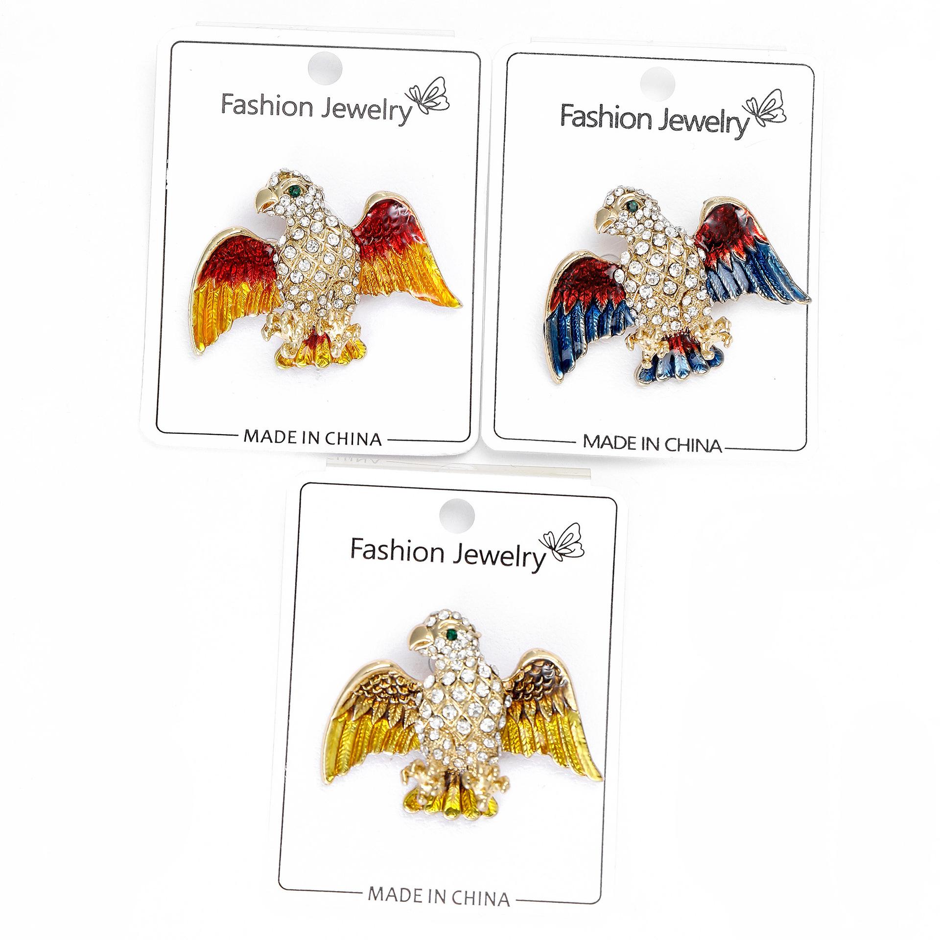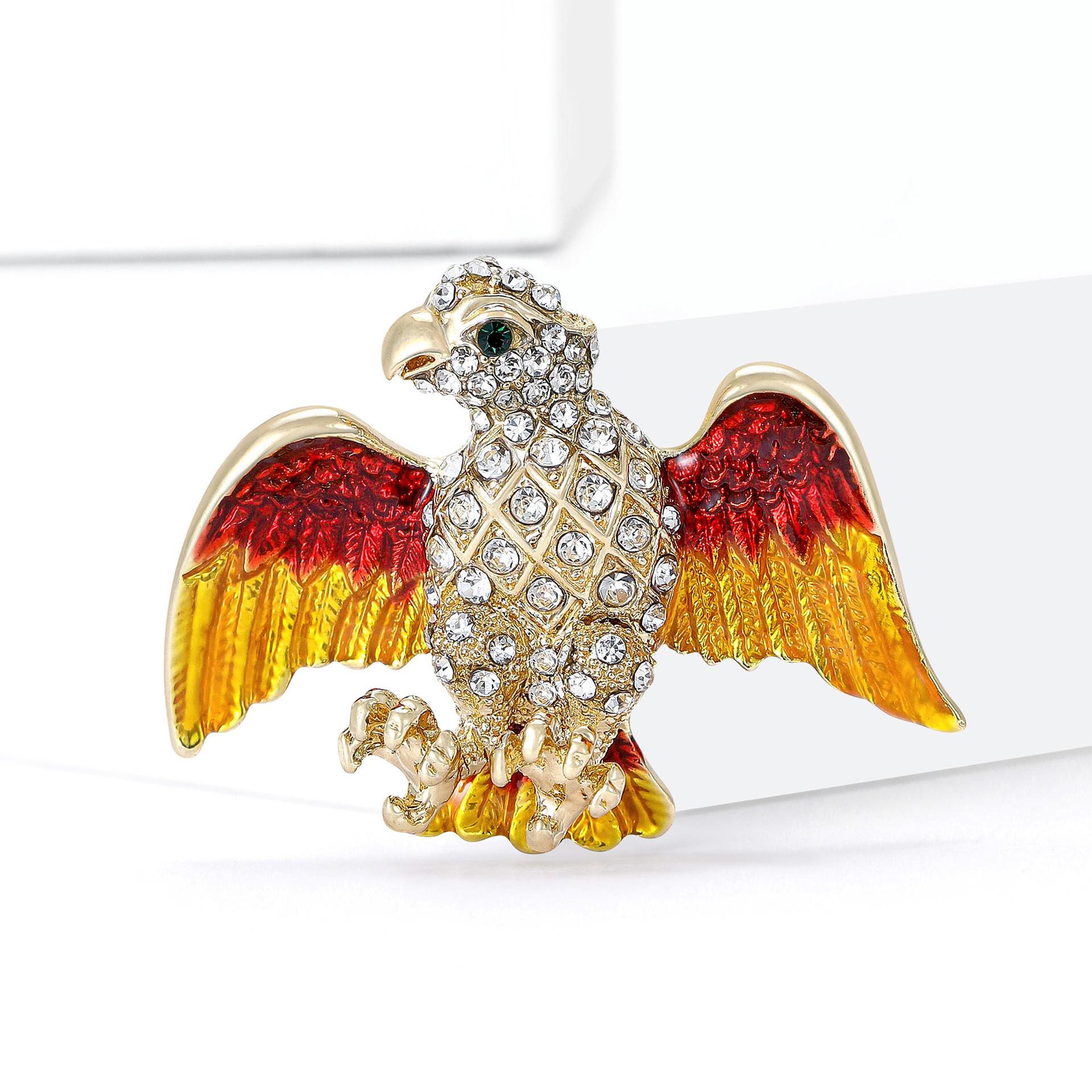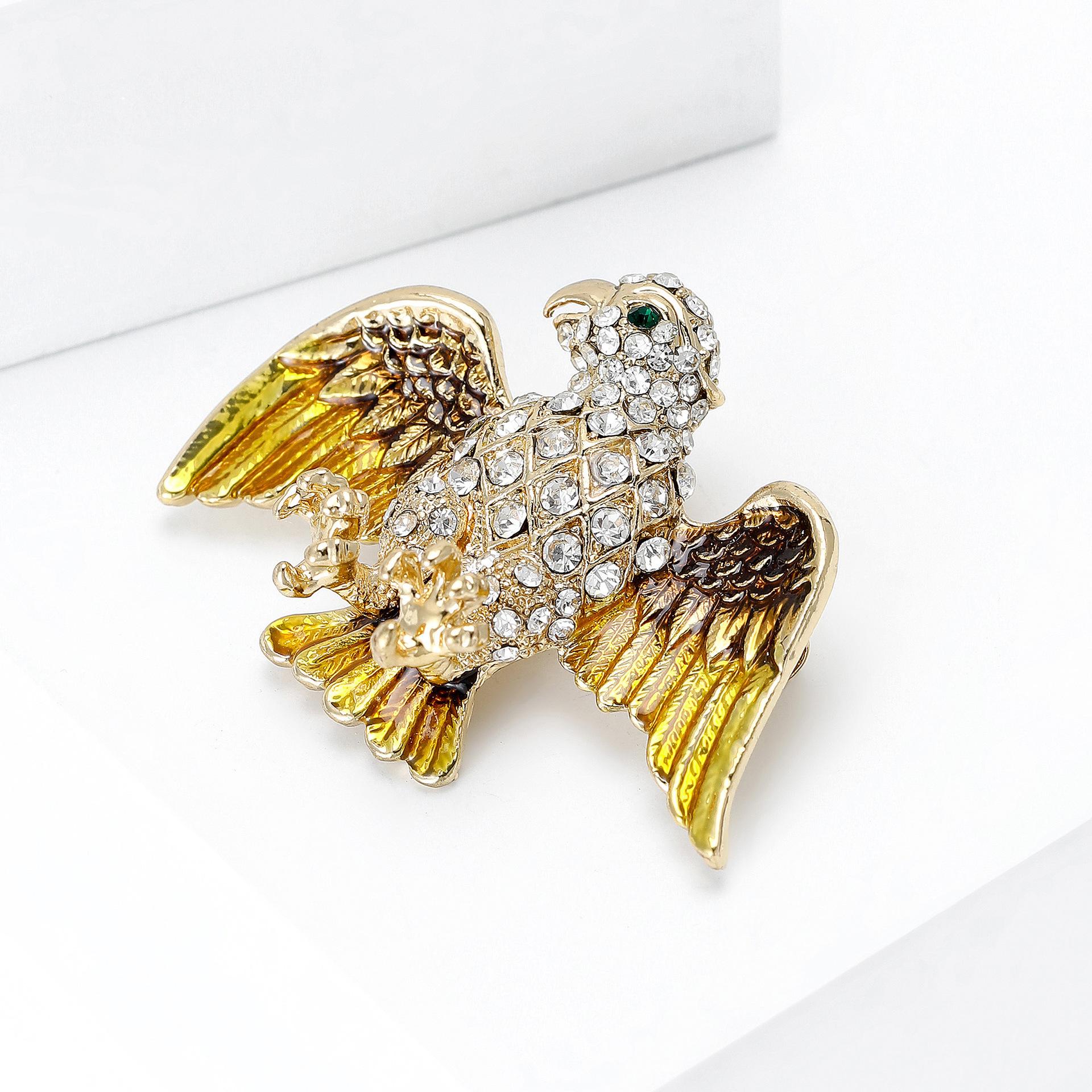 Broche de Águia em Liga de Novo Estilo Europeu e Americano com Gotejamento de Óleo e Incrustado de Diamantes, Acessórios de Vestuário de Lapela de Desenho Animado de Animal Moderno e Criativo