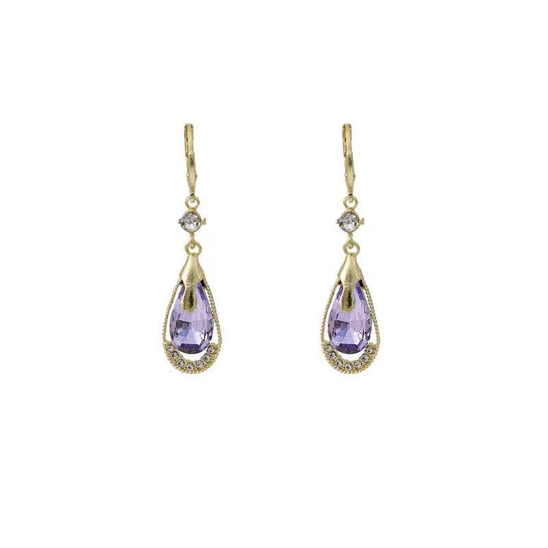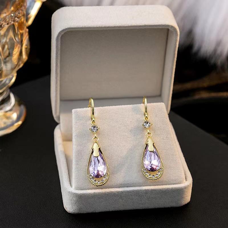 Luz de Luxo Moda High-end Sense Roxo Diamante Gota Orelha Fivela Nicho Design Elegante Micro-incrustado Oco Brincos Brincos Atmosféricos