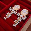 Brincos Retrô Nicho Oval Borla Pérola Imitação Agulha Prata Estilo Palácio Francês Brincos High-End para Mulheres
